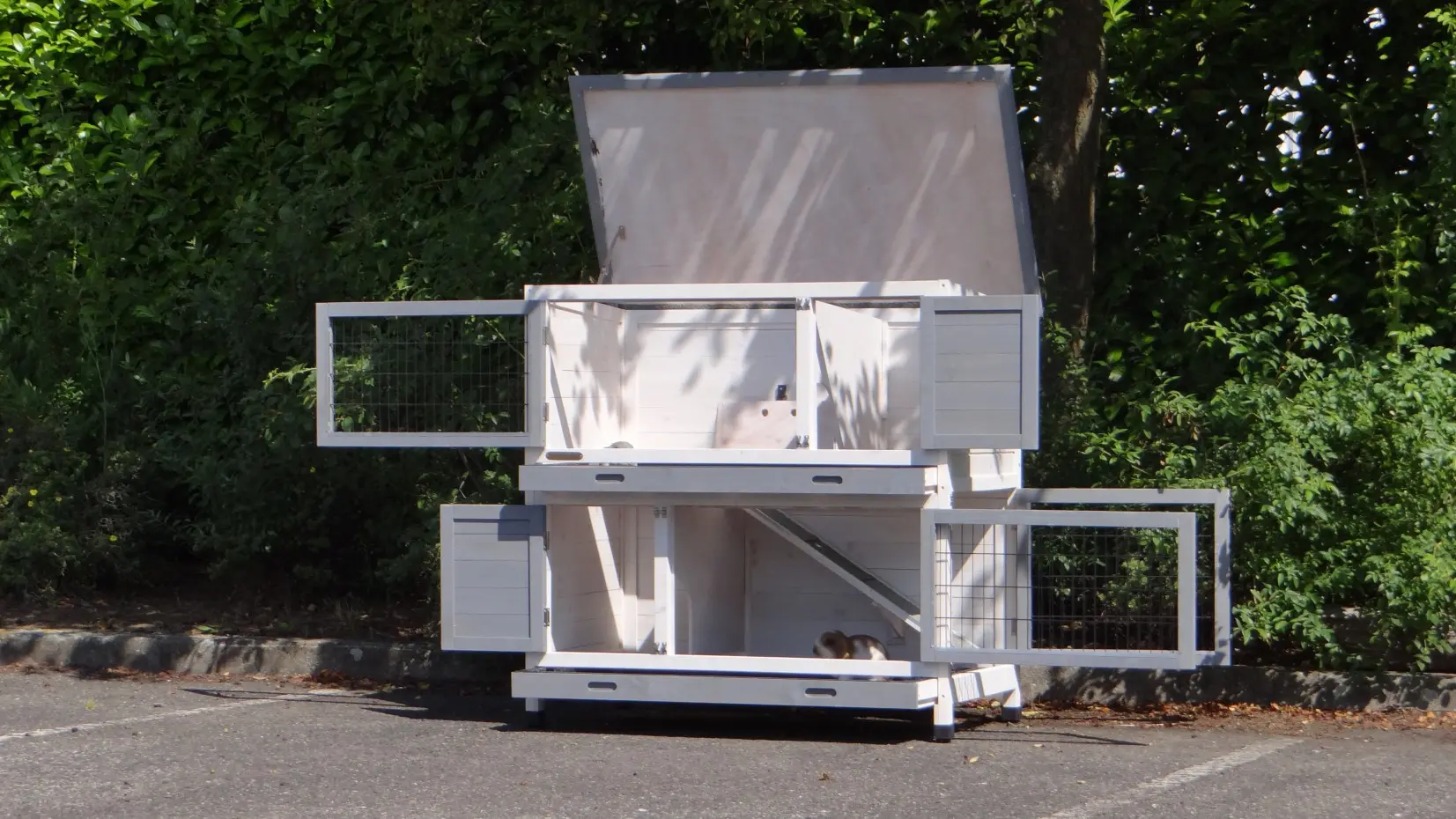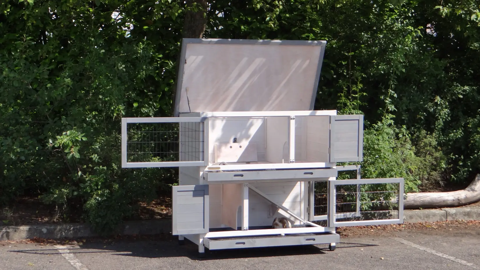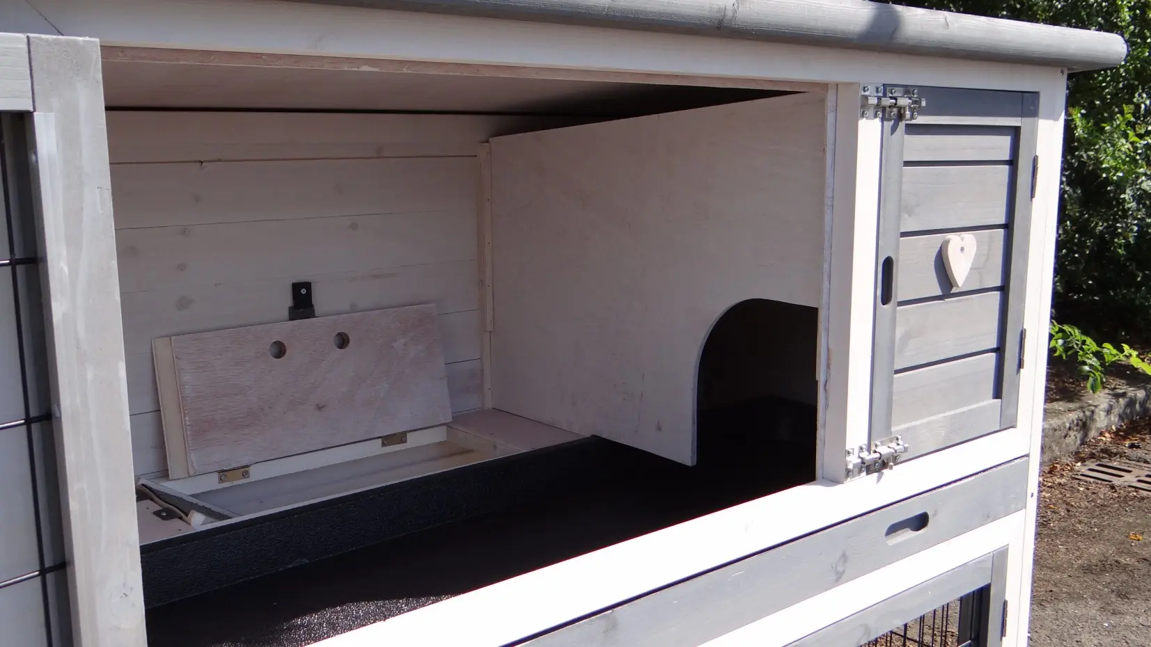 - The doors of this rabbit hutch are equiped with double locks