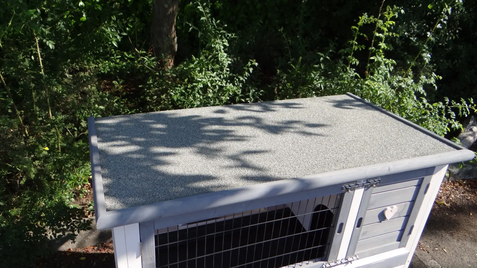 - The roof of this rabbit hutch is equipped with roofing felt