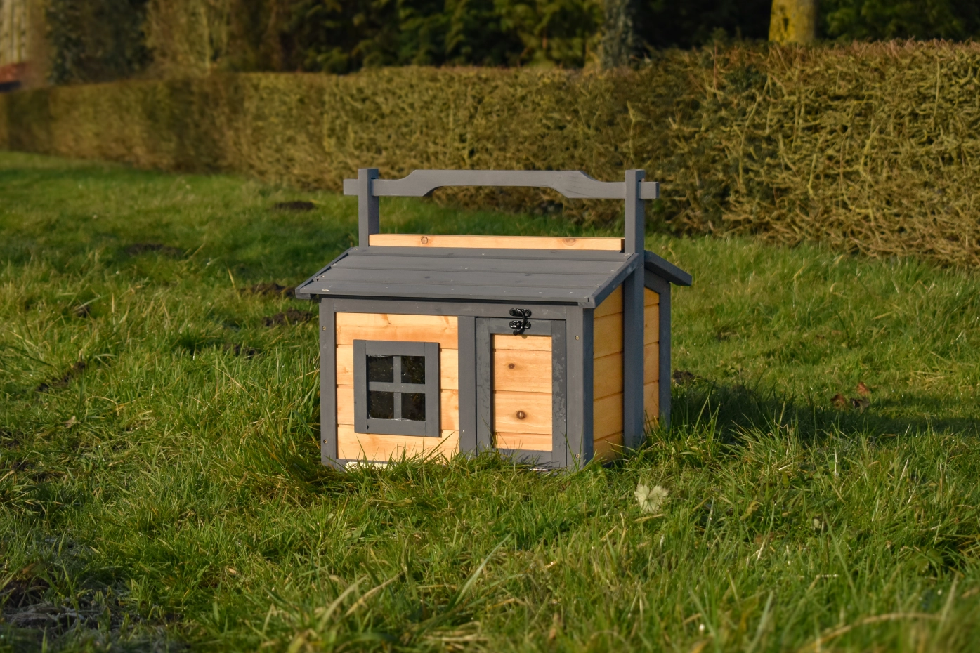 - The pet house is made of beautiful pine wood