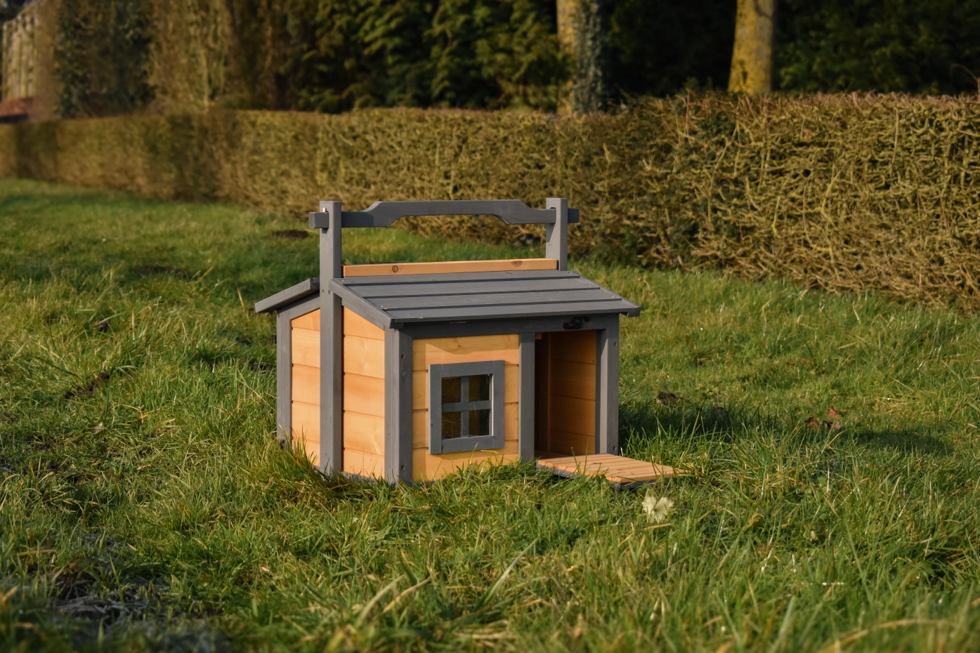 The wood, used for your pet house is a unique natural product which has been processed according to traditional methods in the country of origin, after careful selection. It is characteristic and unique in every way. This wood product has been manually processed. No single piece of wood is the same in shape, structure or color, so color shades are inevitable even within one piece of wood. Wind cracks, imperfections and the presence of large and small knots testify to their origin and years of growth. Bumps are usually manually updated with wood fill. Through use and through the influence of light, new pet houses will finally get a warmer color. Color differences in comparison with the show model or even among themselves are therefore usual. The pet house is stained in the colors as in the picture. You should do it once again to prevent mold and rot. You can easily order the stain together with the pet house.