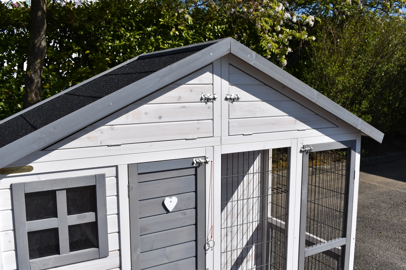 - The doors of this rabbit hutch are equiped with double locks