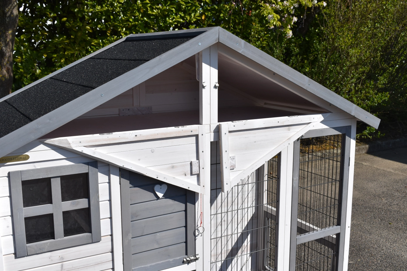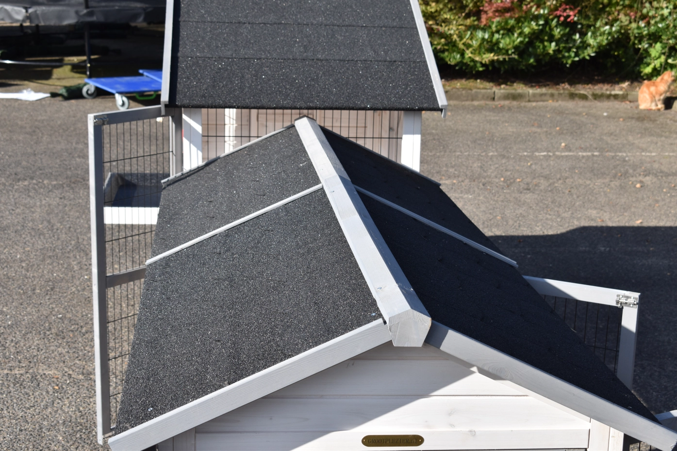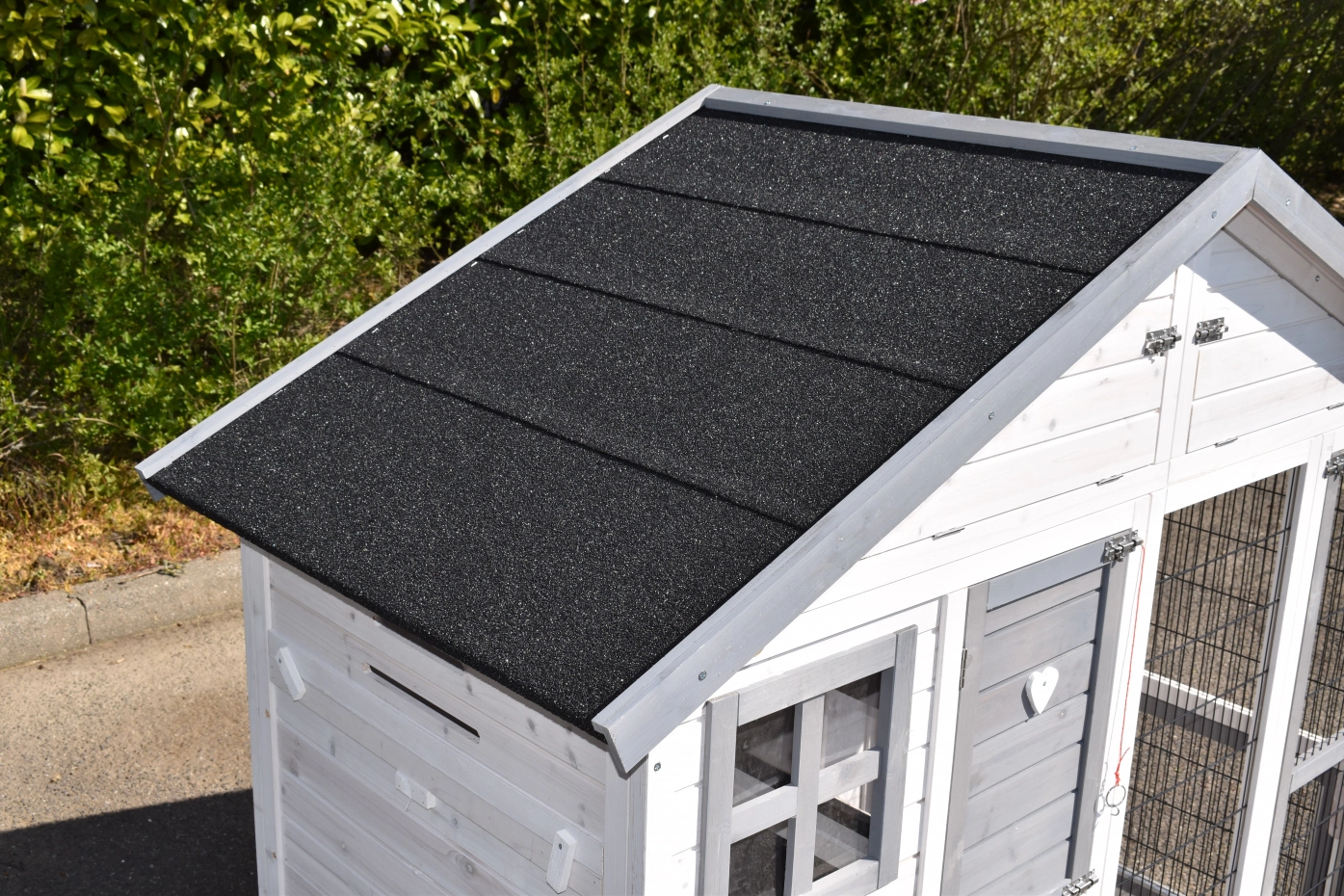 - The roof of this rabbit hutch is equipped with roofing felt