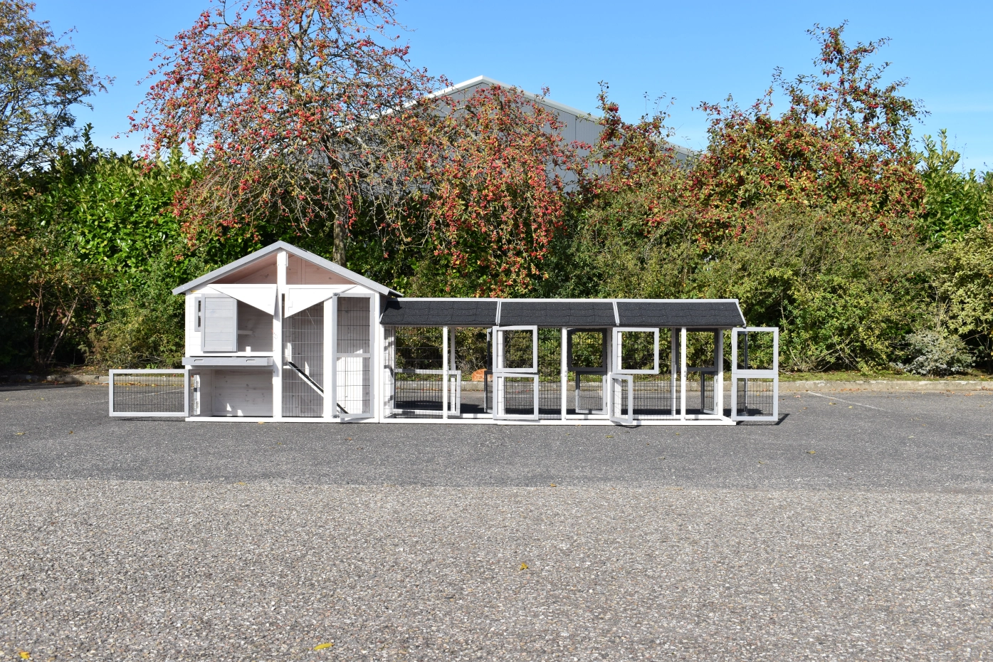 The rabbit hutch Holiday Medium with 3 extra runs provides your rabbits with ample space. It features a lockable sleeping area and a convenient attick.