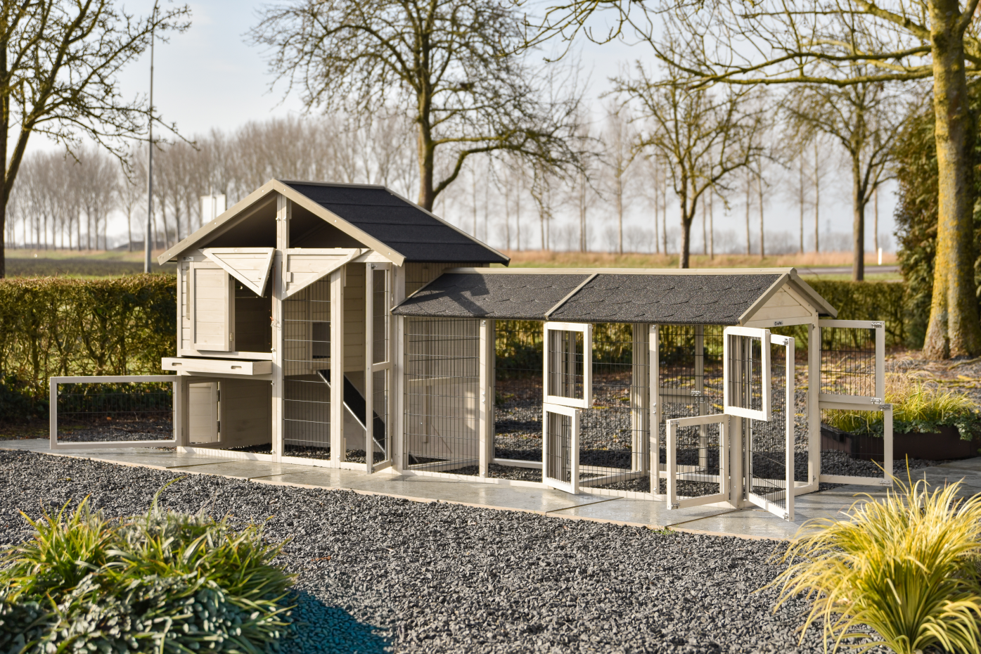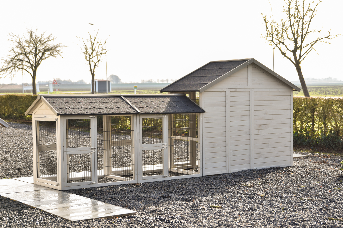 • Free-range run Medium light/grey