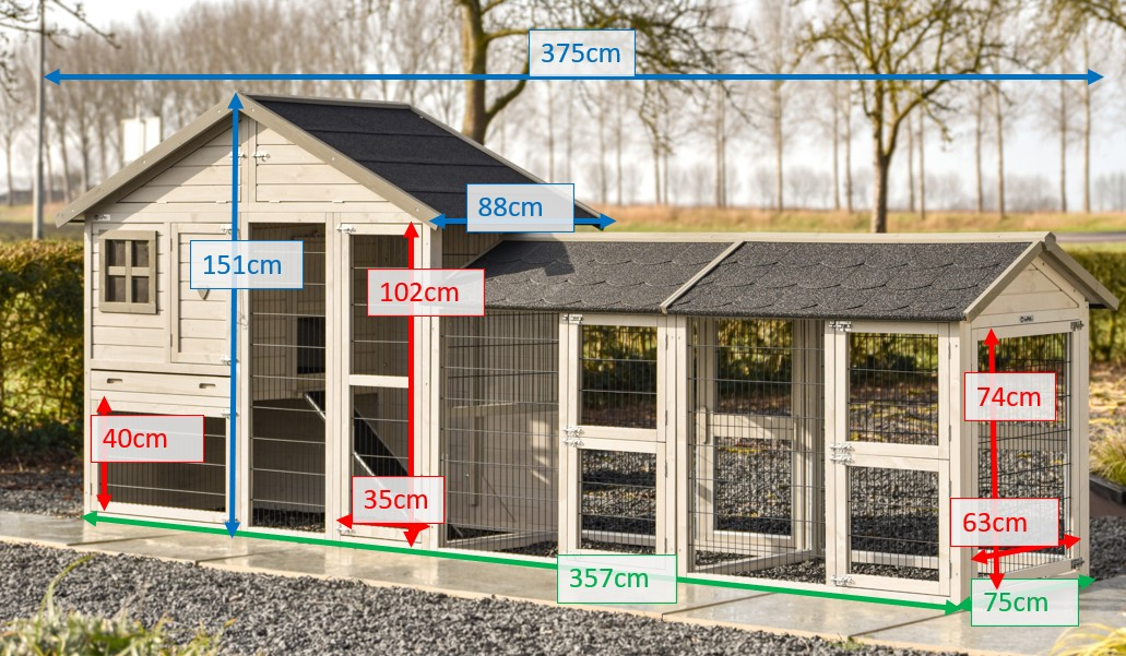 | Outer dimensions including roof (WxDxH) | 375x88x151cm |