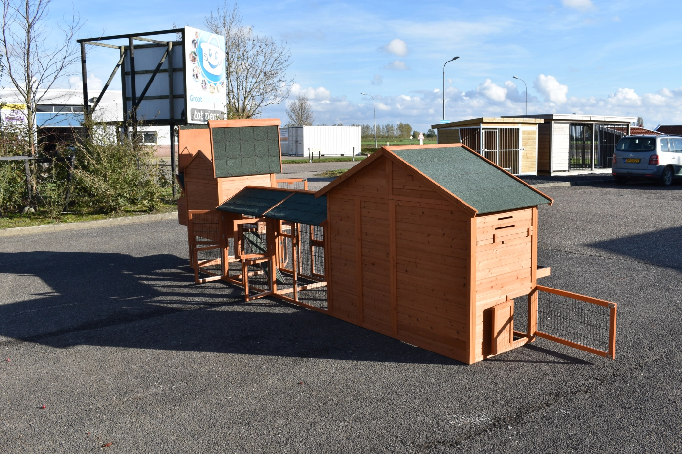 The wood, used for your pet house is a unique natural product which has been processed according to traditional methods in the country of origin, after careful selection. It is characteristic and unique in every way. This wood product has been manually processed. No single piece of wood is the same in shape, structure or color, so color shades are inevitable even within one piece of wood. Wind cracks, imperfections and the presence of large and small knots testify to their origin and years of growth. Bumps are usually manually updated with wood fill. Through use and through the influence of light, new pet houses will finally get a warmer color. Color differences in comparison with the show model or even among themselves are therefore usual. The pet house is stained in the colors as in the picture. You should do it once again to prevent mold and rot. You can easily order the stain together with the pet house.