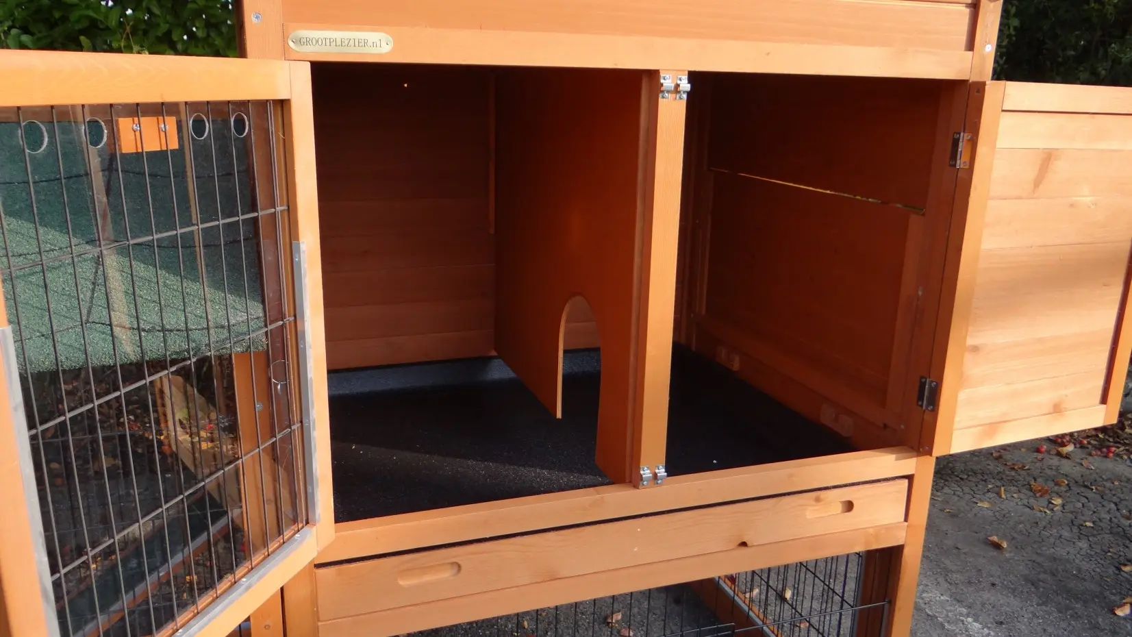 - The doors of this rabbit hutch are equiped with double locks