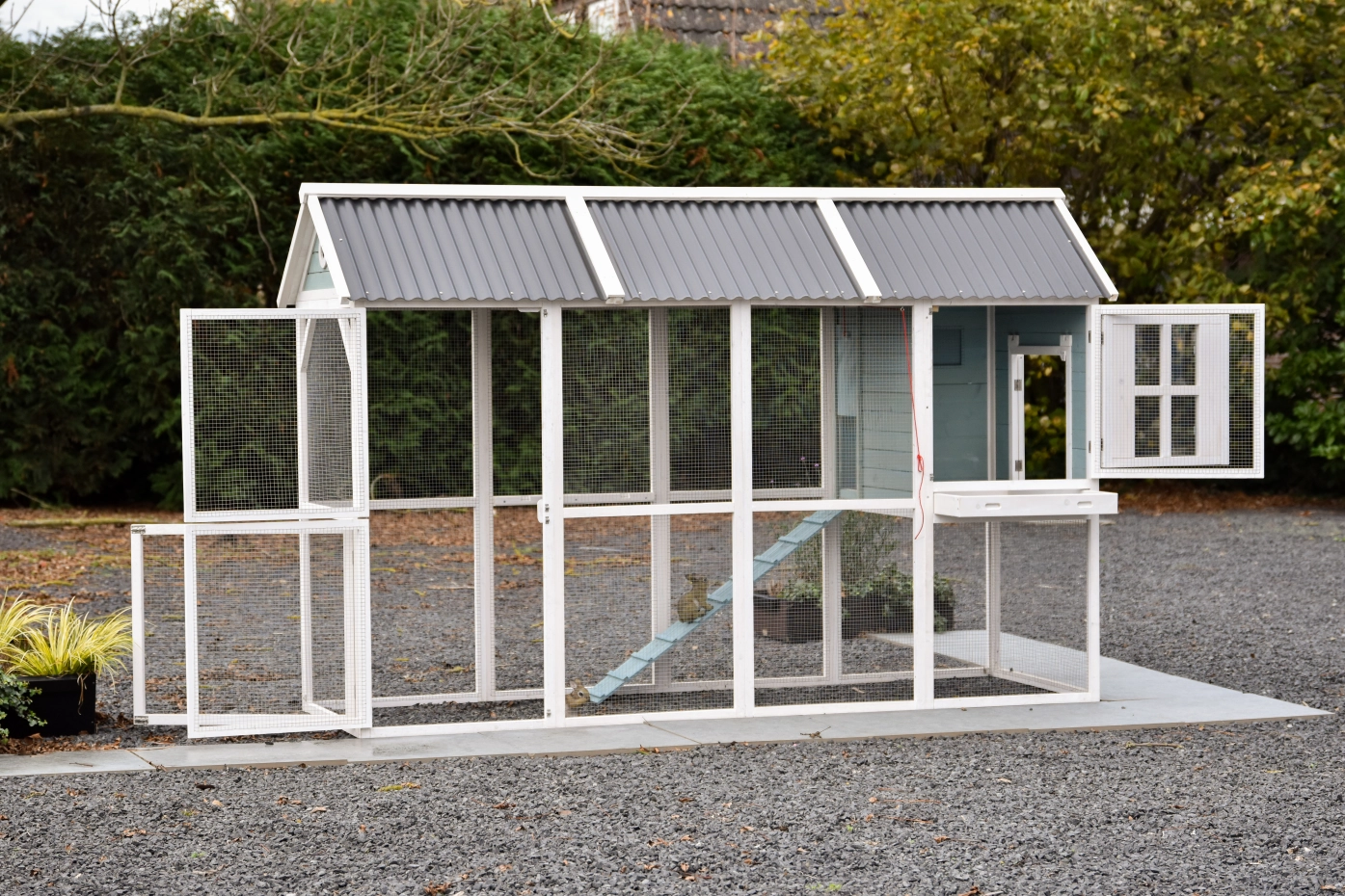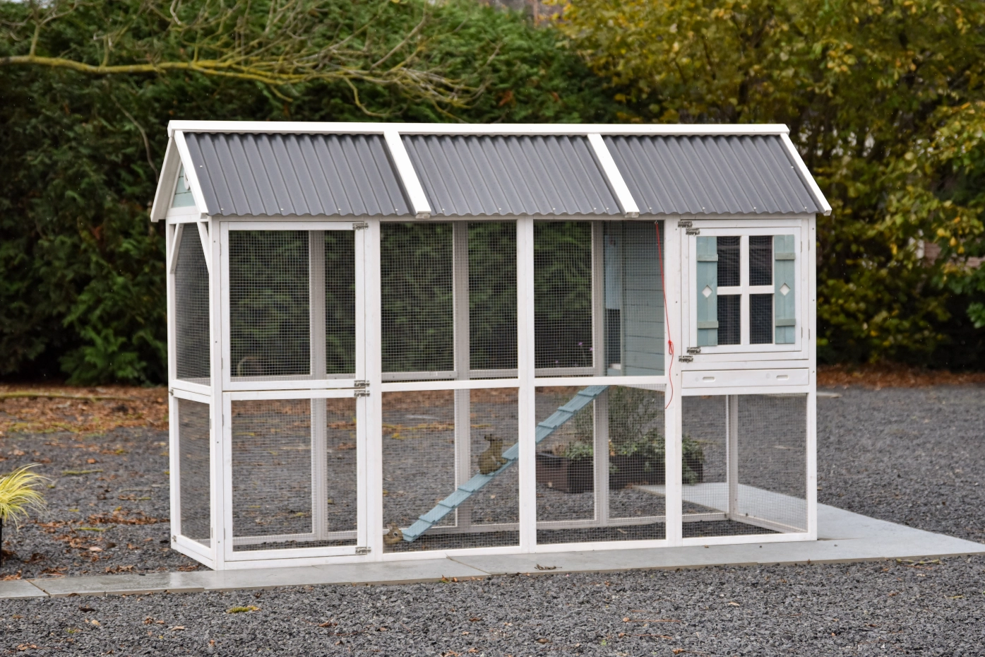 - The rabbit hutch has a plastic roof