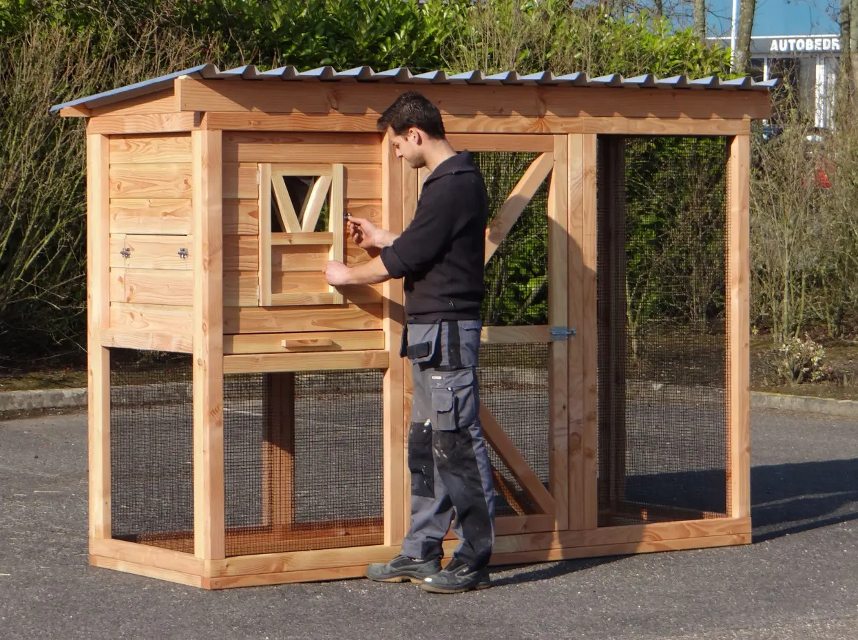 - The hutch is made of panels of 180x85cm or 180x120cm. This can be screwed together. Drill bit, screws and bits are included.