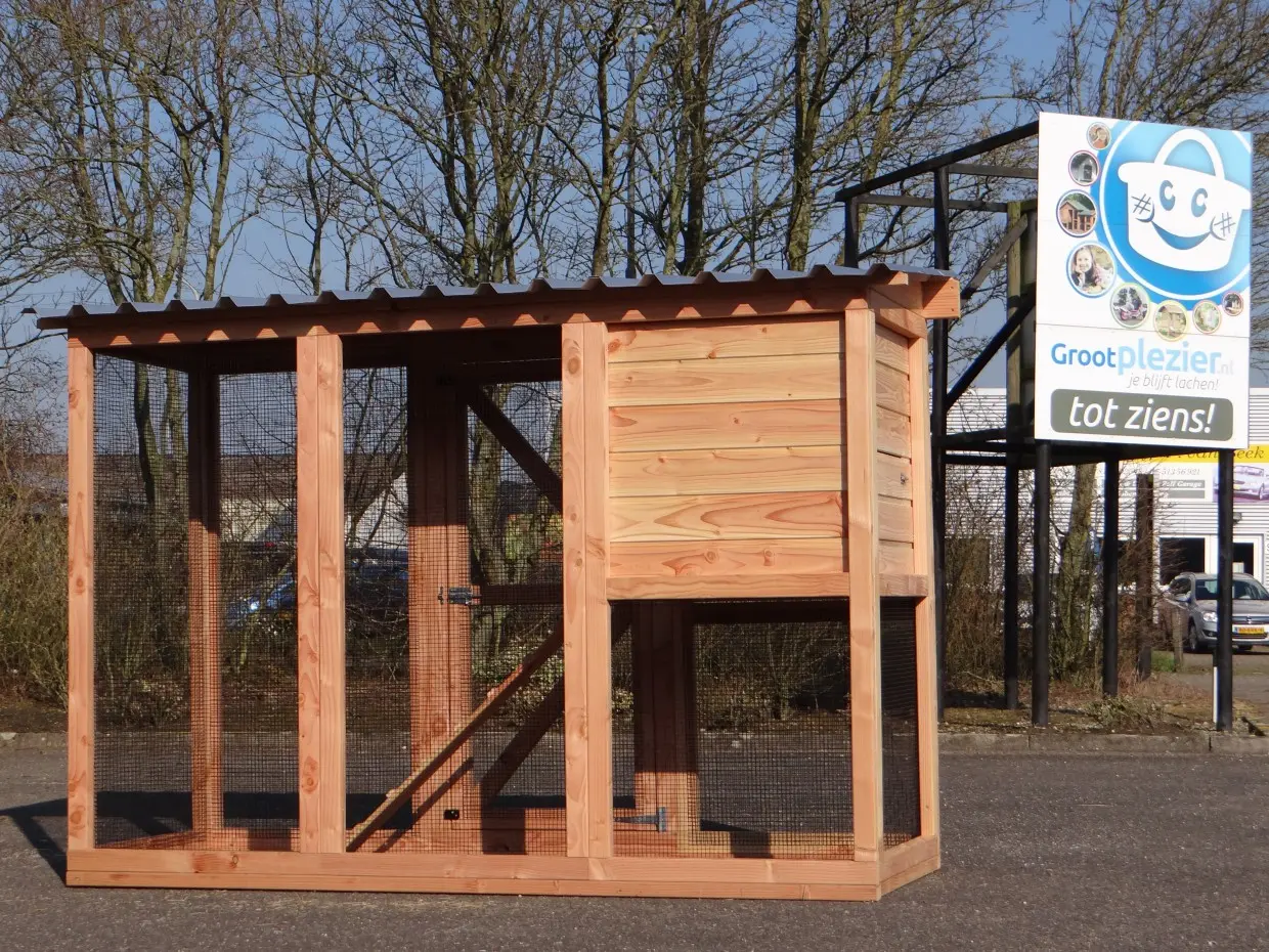 This rabbit hutch Flex 3.1 of Douglaswood is really sustainable and very practical. For exemple by its large door to the run, and door from the sleeping compartment. In the run you can even walk straight, to make it easy to approach your pets. Please note: The door of the run opens to the outside. On the photo this is not yet the case.