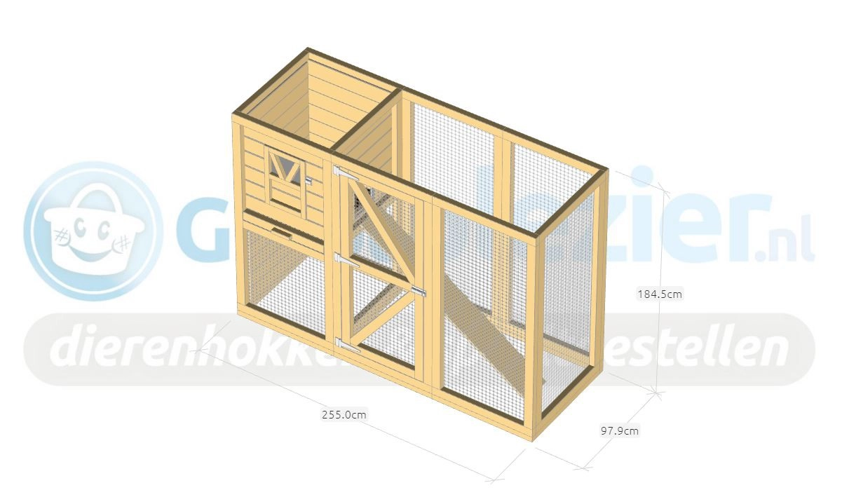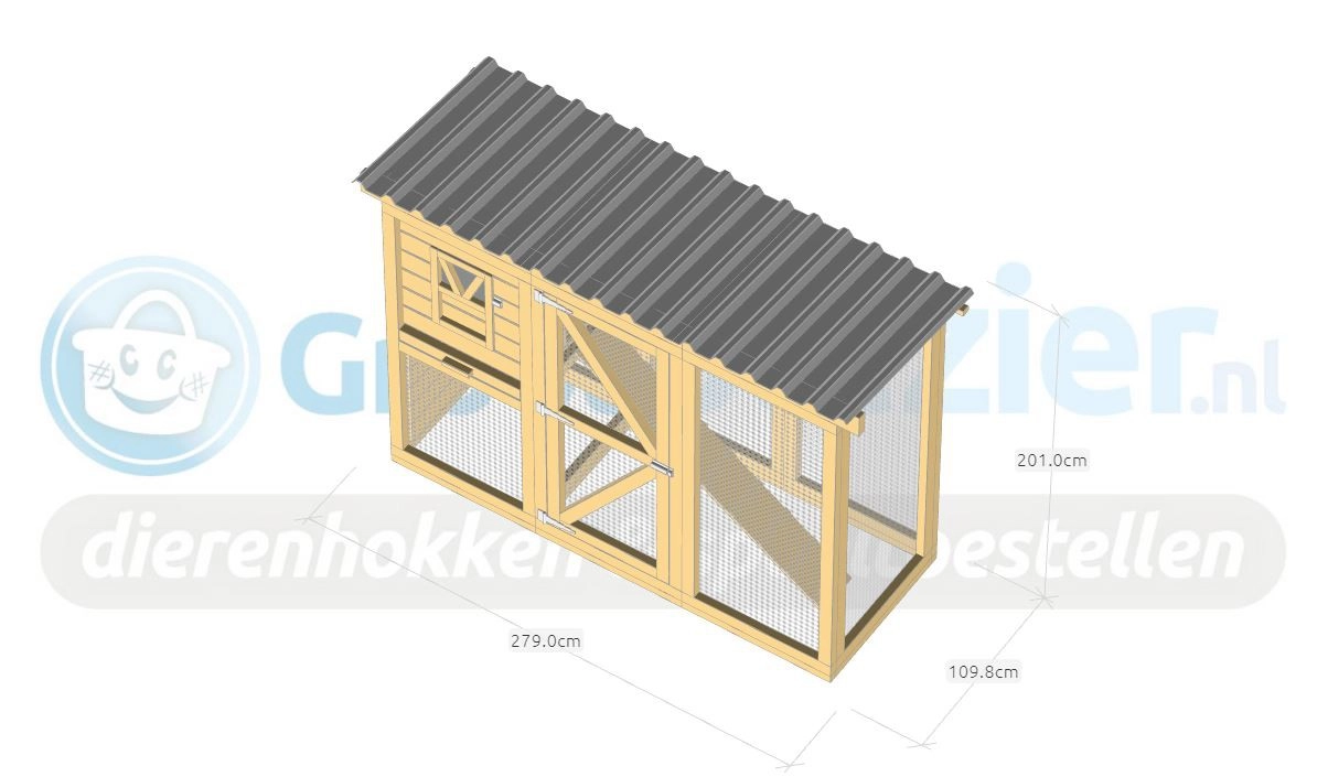 | Outer dimensions incl. roof and nest box (WxDxH) | 285x115x200cm |