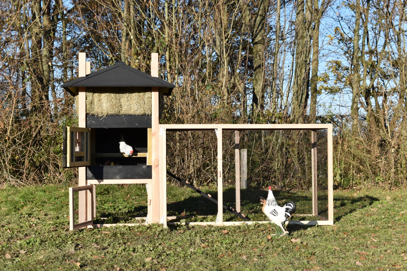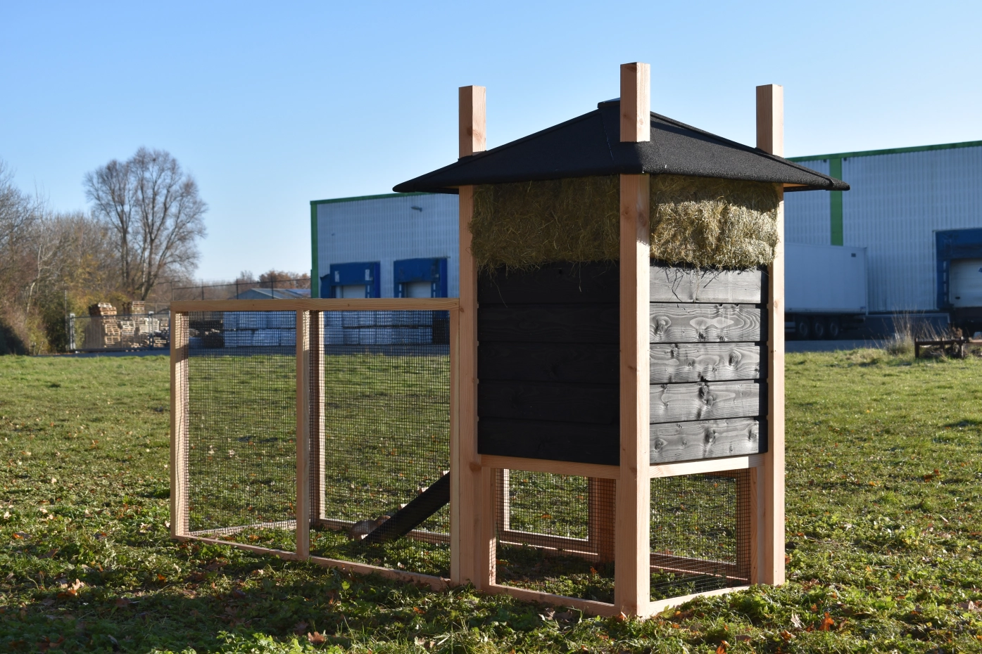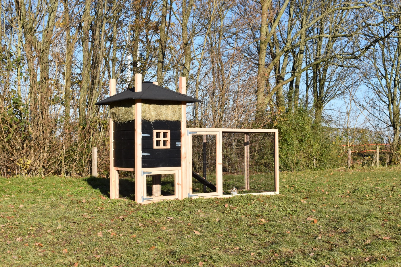 Rabbit hutch haystack Rosalynn is an acquisition for your garden. You can easily order hay with it. Because of the large run your rabbits have a lot of space. Because of the large door you can clean the sleeping compartment very easily. This hutch is made of Douglaswood and black impregnated wood. In short, a hutch of the best quality!