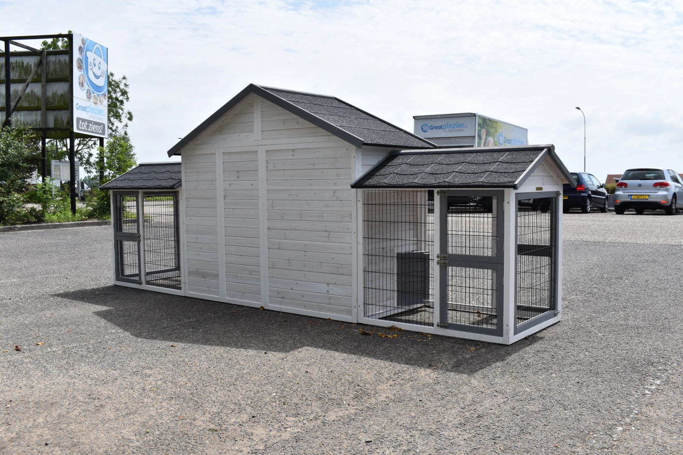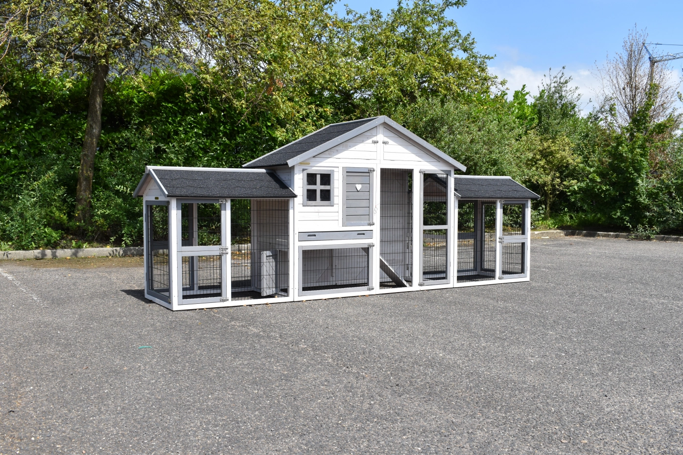 The rabbit hutch Holiday Medium with 2 attached runs is a spacious, practical, and beautiful rabbit hutch with a sleeping area and ample run space. Suitable for large rabbits like the French Lop, Flemish Giant, and other large breeds or a group of rabbits. The hutch features a sliding tray and a convenient attick.