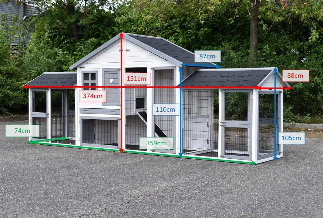 | Outer dimensions incl. roof and nest box (WxDxH) | 374x88x151cm |