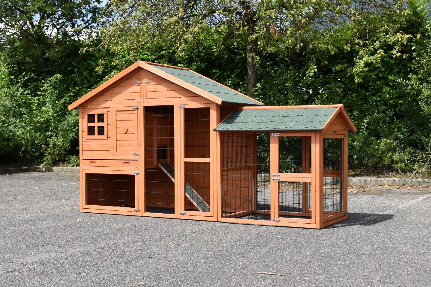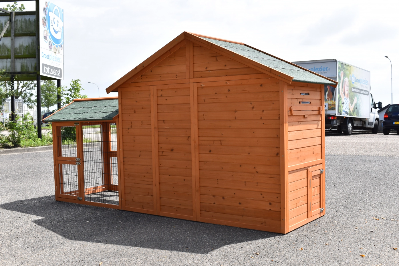 Rabbit hutch Holiday Medium is extended with a run Space Medium. Animalhouse Holiday Medium is a beautiful, practical hutch with sleeping compartment and run. This hutch is suitable for 2 till 4 rabbits. Dimensions rabbit hutch with run are 284x88x151cm.