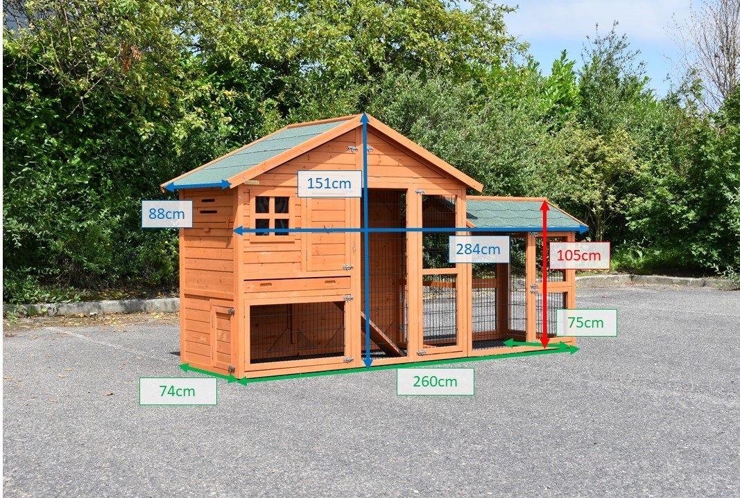 | Outer dimensions incl. roof and nest box (WxDxH) | 284x88x151cm |