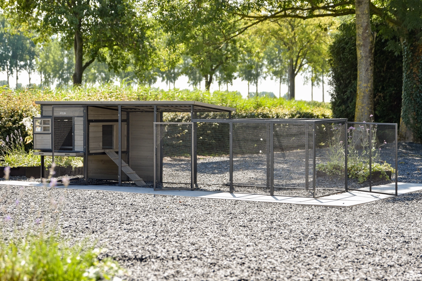 - The roof of the additional run is equipped with mesh (ca. 12x12mm)