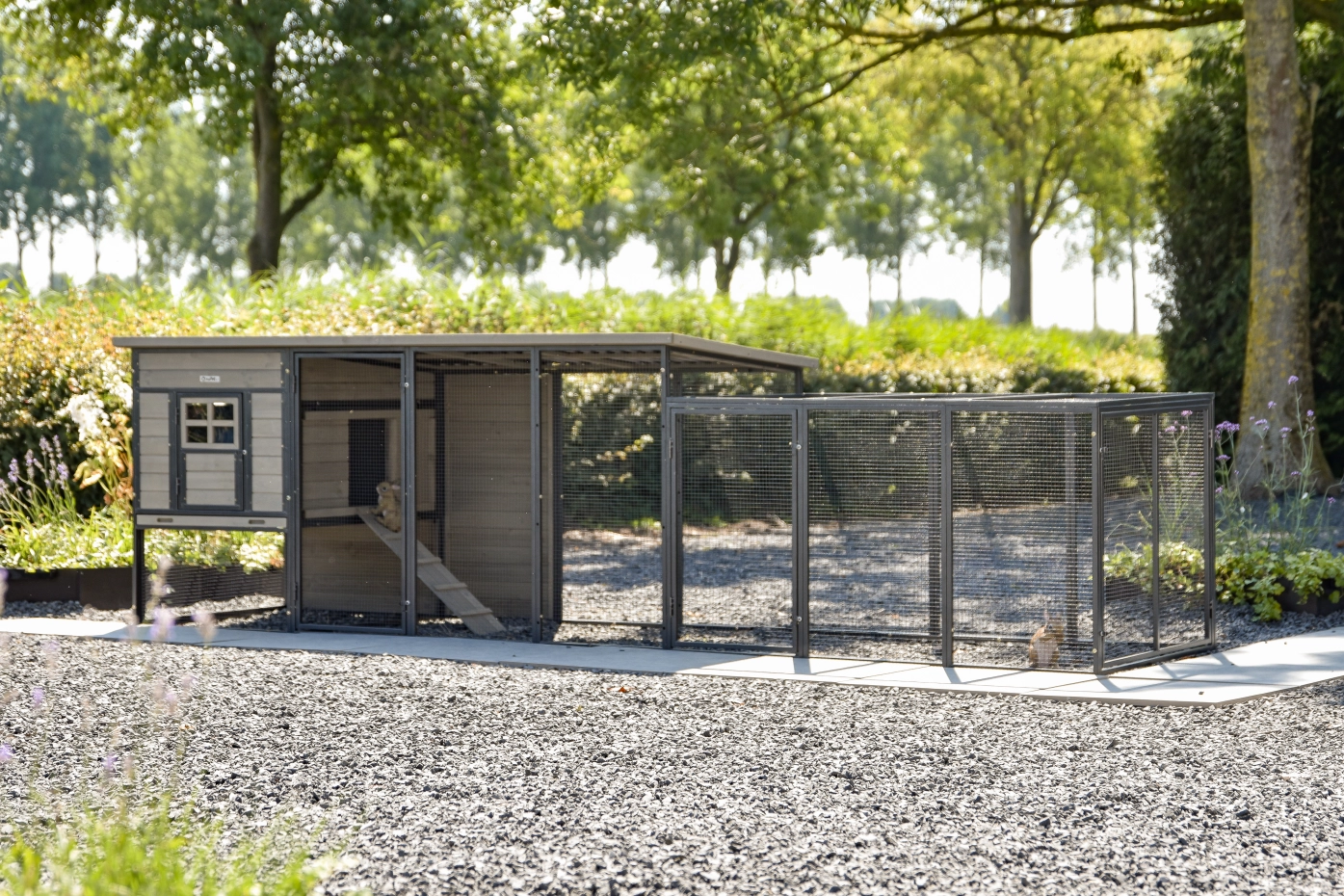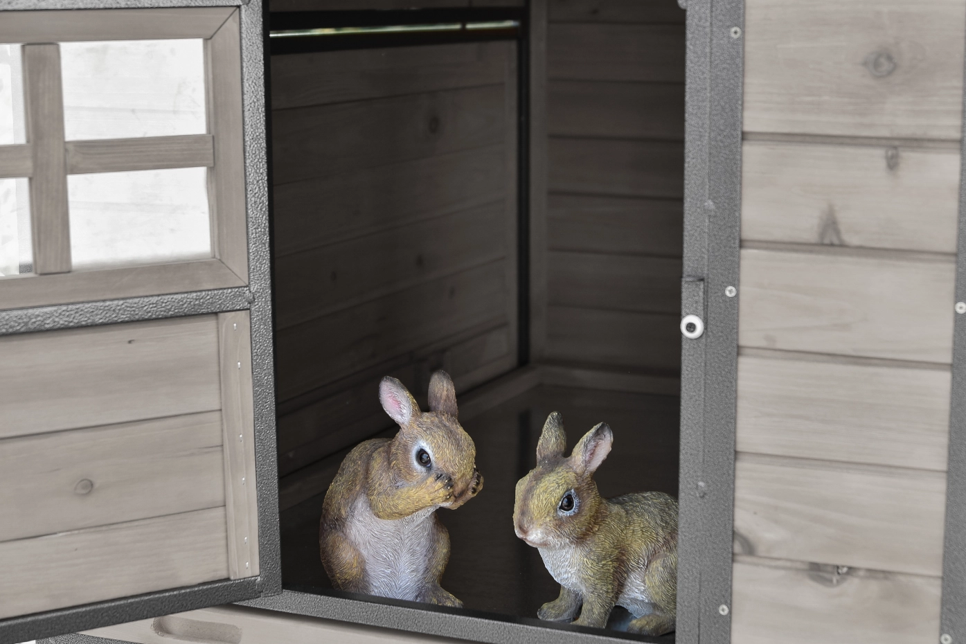 Rabbit Hutch Judy is very spacious and practical. It offers a comfortable home for your rabbits and features a large sleeping area for extra protection. With a convenient cleaning tray and an extra-large run, it is perfect for 3 large or up to 5 small rabbits.