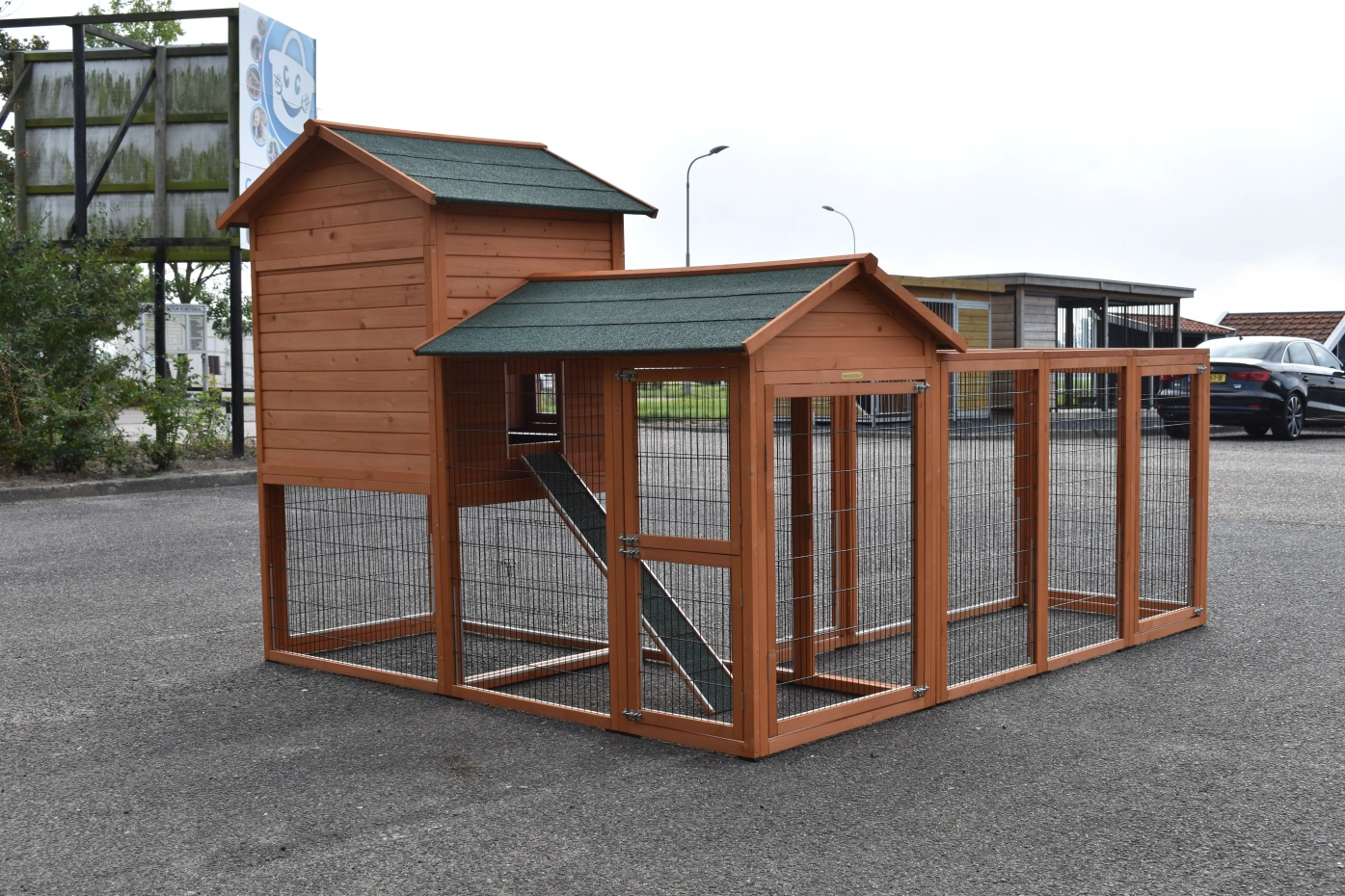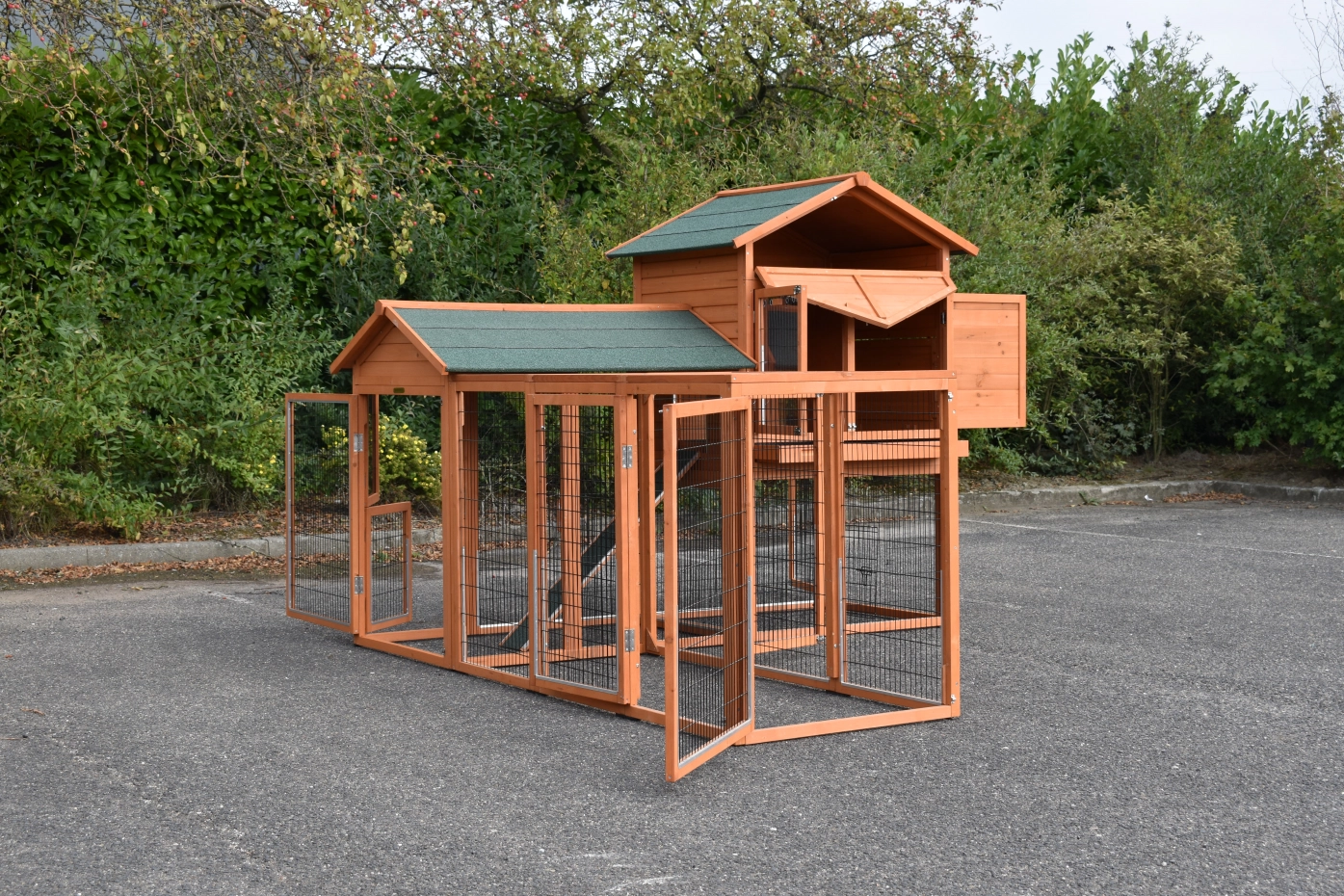 The wood, used for your pet house is a unique natural product which has been processed according to traditional methods in the country of origin, after careful selection. It is characteristic and unique in every way. This wood product has been manually processed. No single piece of wood is the same in shape, structure or color, so color shades are inevitable even within one piece of wood. Wind cracks, imperfections and the presence of large and small knots testify to their origin and years of growth. Bumps are usually manually updated with wood fill. Through use and through the influence of light, new pet houses will finally get a warmer color. Color differences in comparison with the show model or even among themselves are therefore usual. The pet house is stained in the colors as in the picture. You should do it once again to prevent mold and rot. You can easily order the stain together with the pet house.
