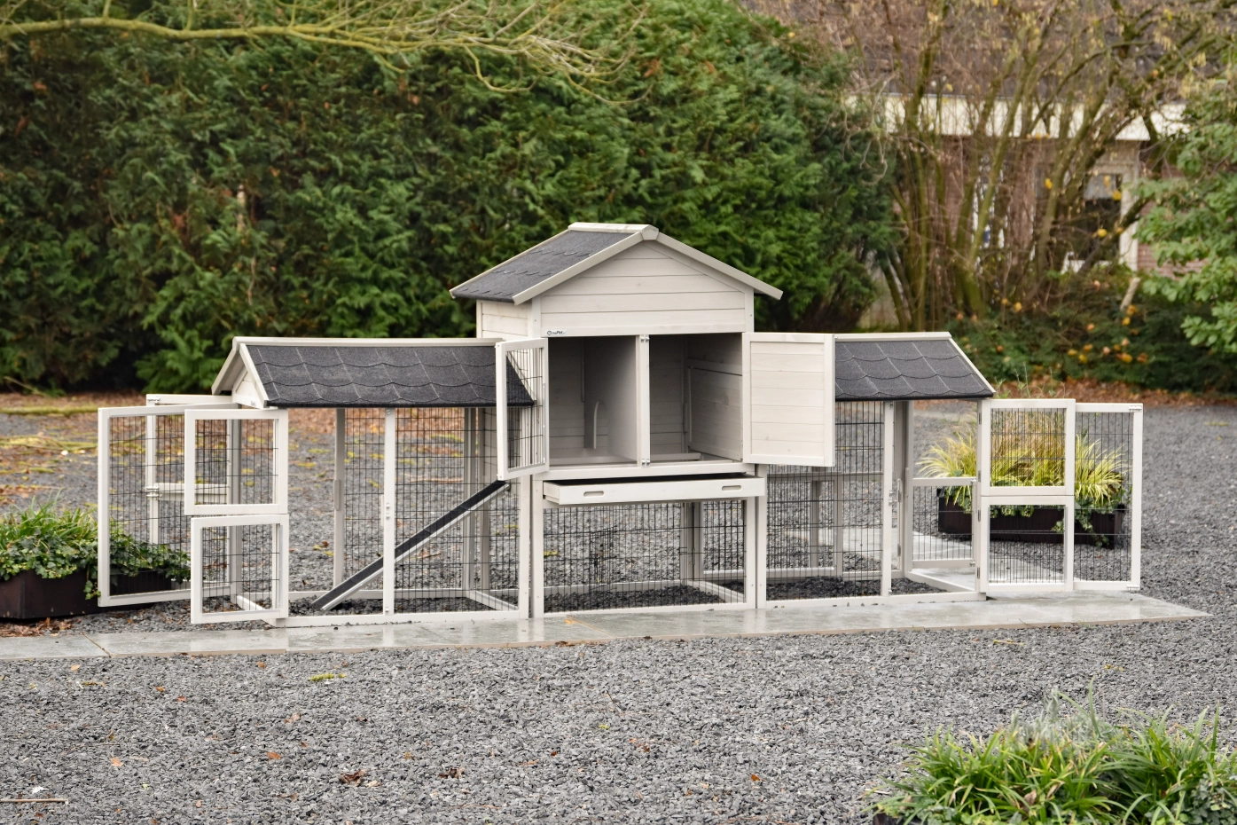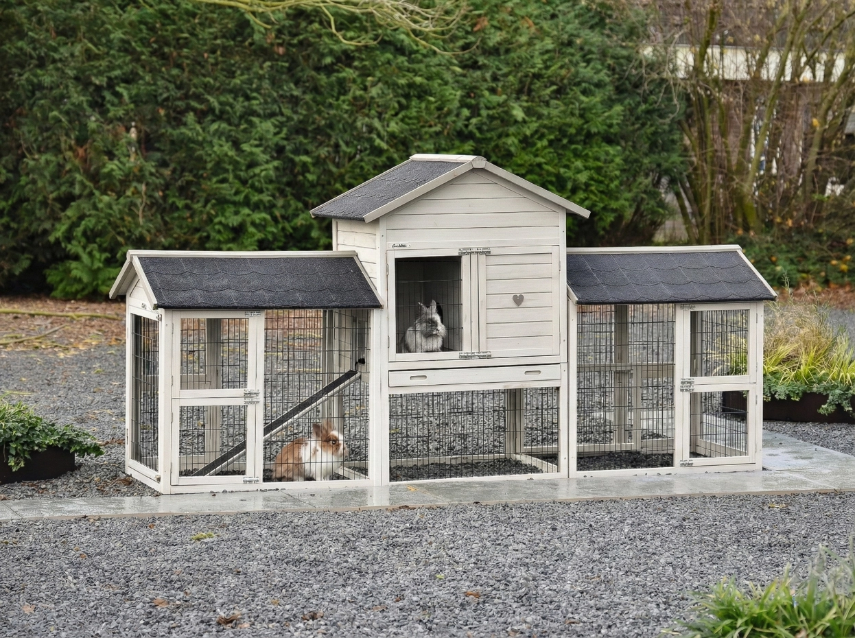 - The doors of this rabbit hutch are equiped with double locks