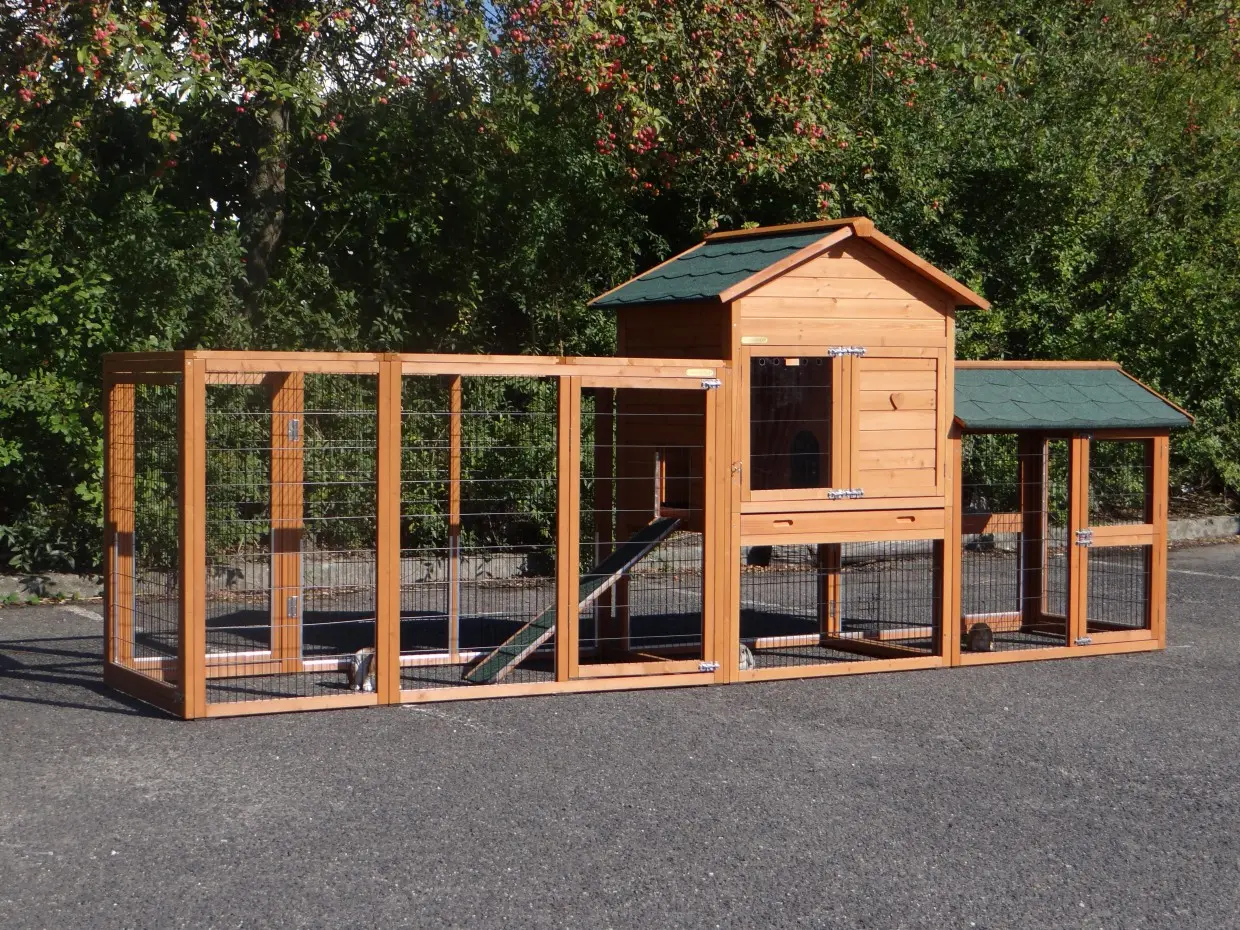 Rabbit hutch Prestige Medium is a beautiful enclosure with plenty of space. The hutch features a reasonably large sleeping compartment, an attick, a sliding tray, and 2 runs. The runs provide ample room, which your rabbits will surely appreciate! The hutch accommodates 1-3 rabbits.