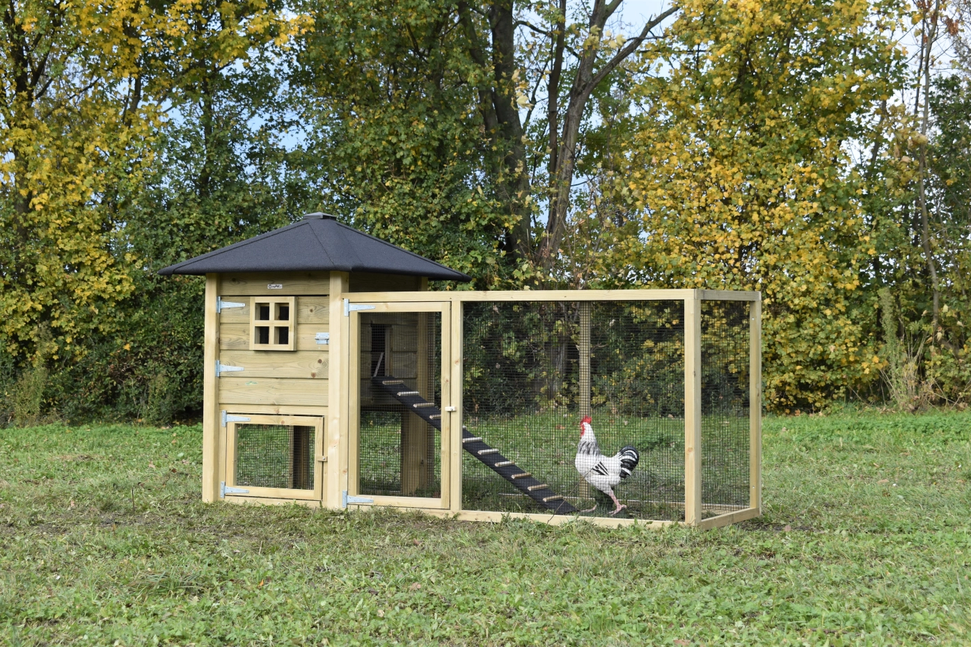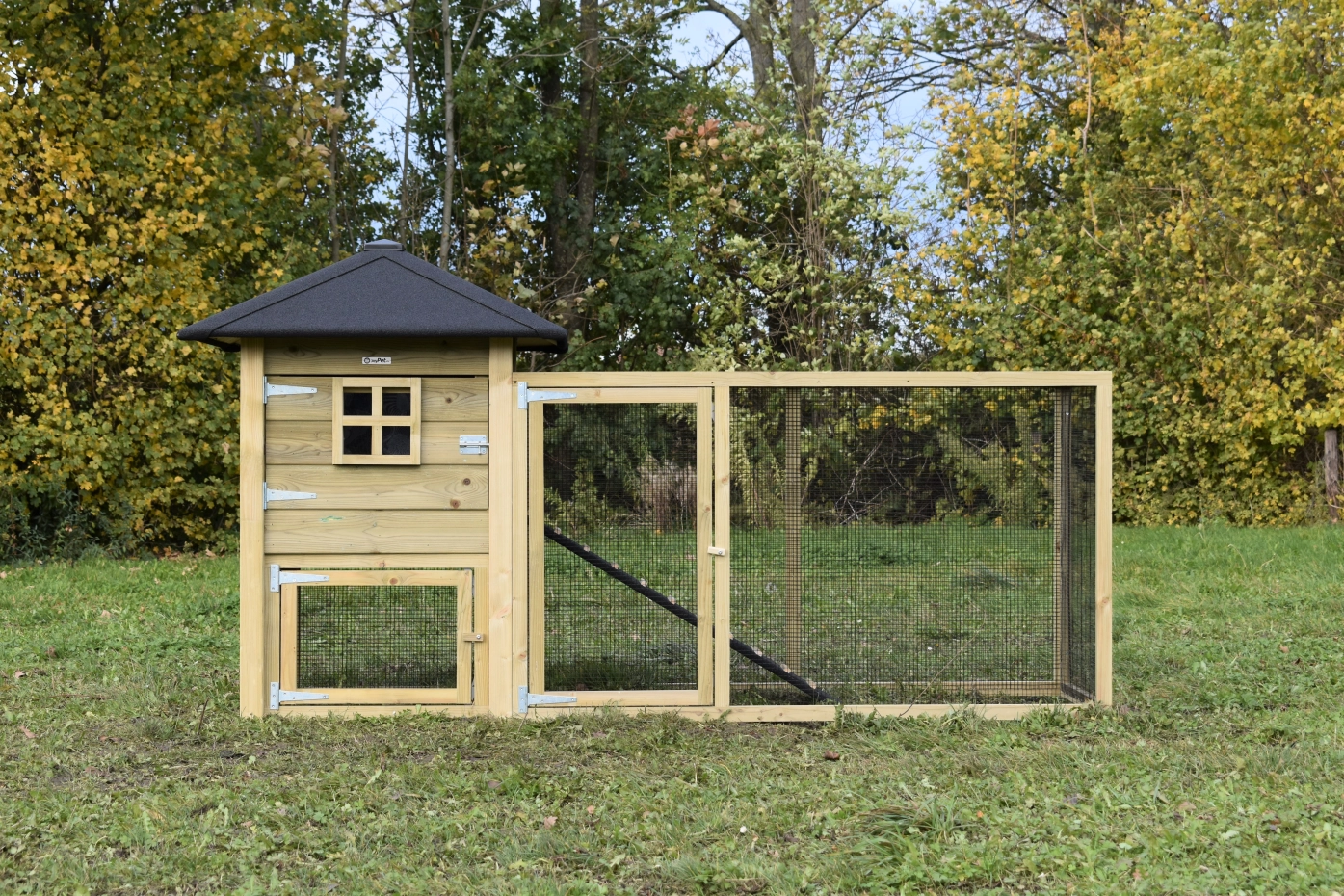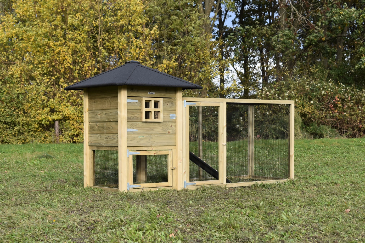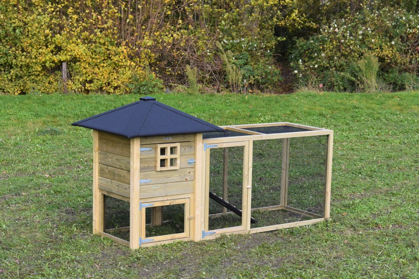 Rabbit hutch Rosy with additional run is a beautiful hutch. The hutch can be cleaned very easily because of the large door on the frontside. The large run offers a lot of space for your rabbits. High quality for a low price!