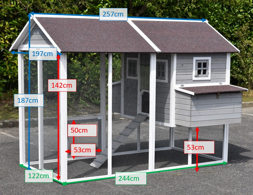 | Outer dimensions including roof (WxDxH) | 257x197x187cm |