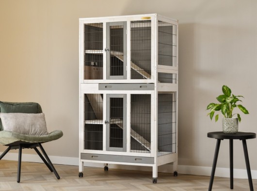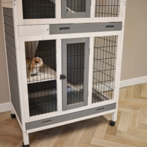 The rabbit cage Beau has multiple floors, so that it is a fun cage for your rabbits. The cage has two trays, to clean the cage very easily.Color combination differs slightly from the photos.