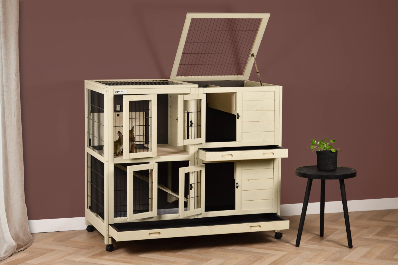 - Also a handy removable drawer at the bottom of this rabbit hutch