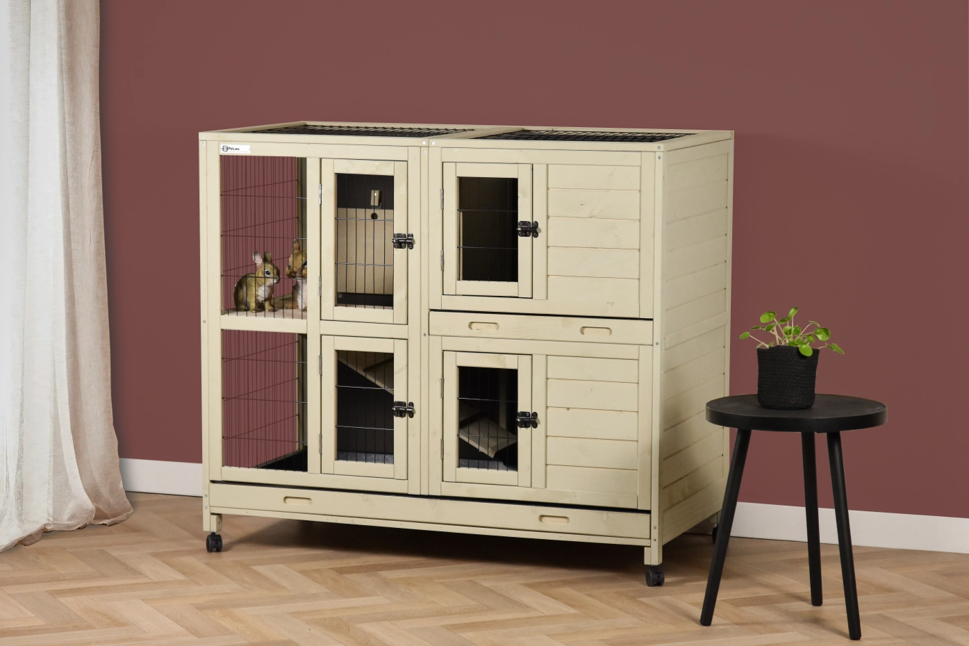 - Hutch equipped with plastic wheels