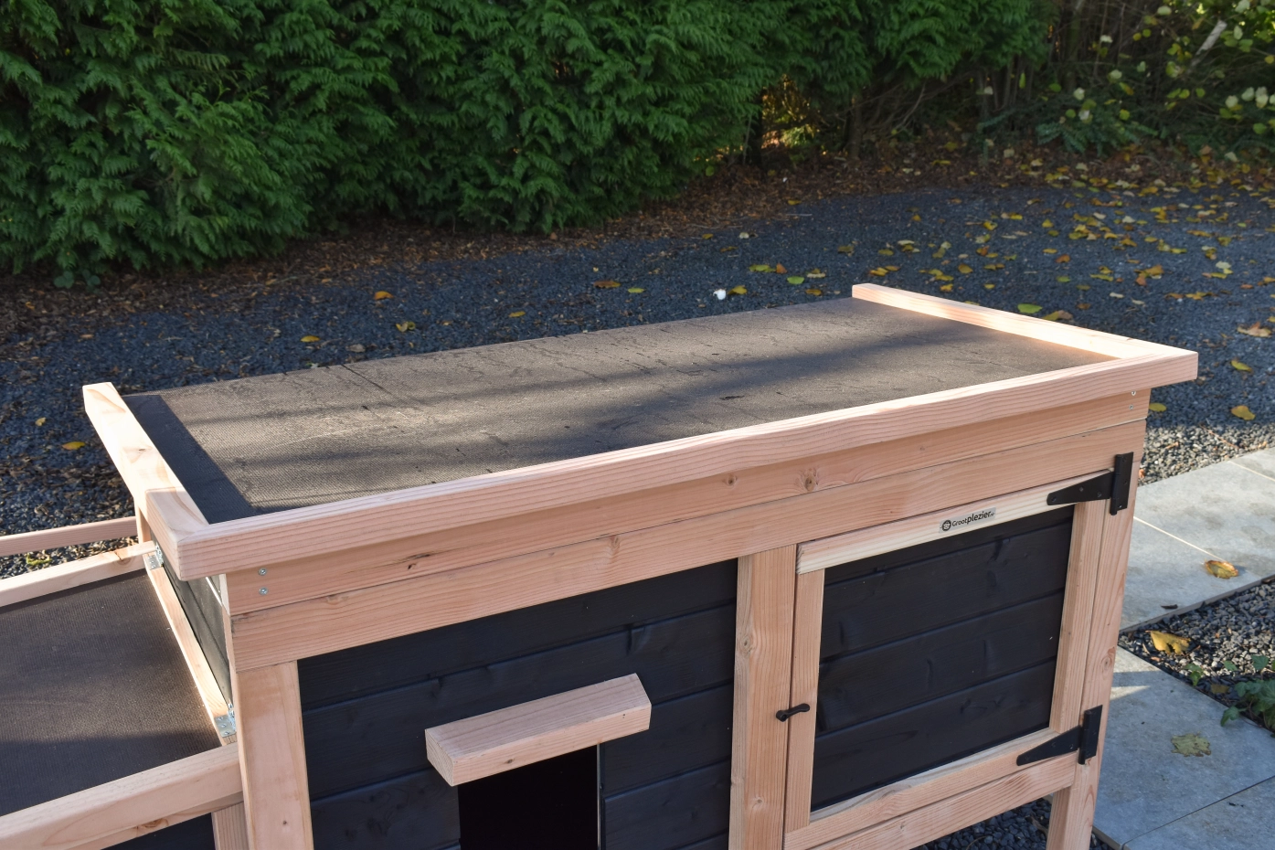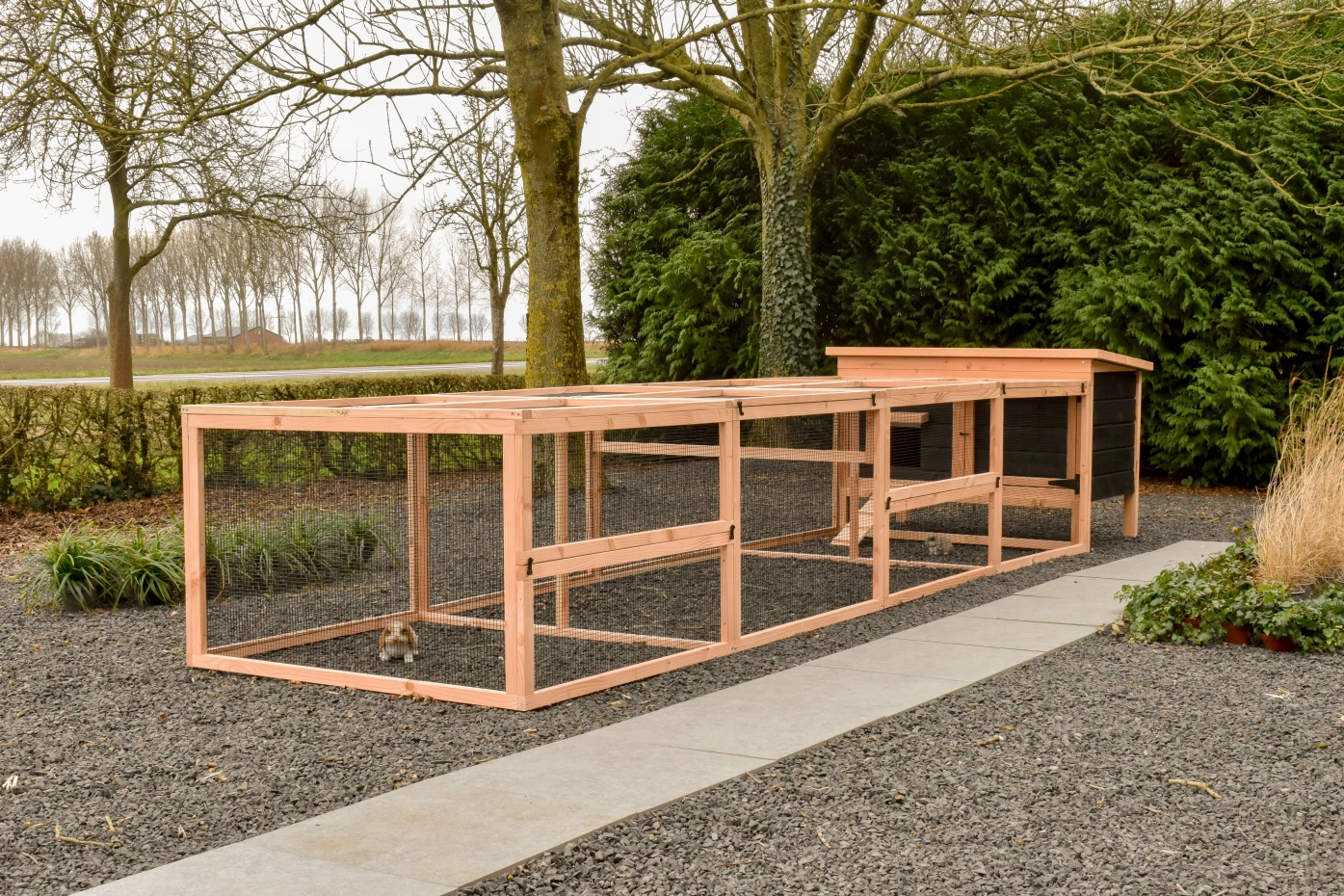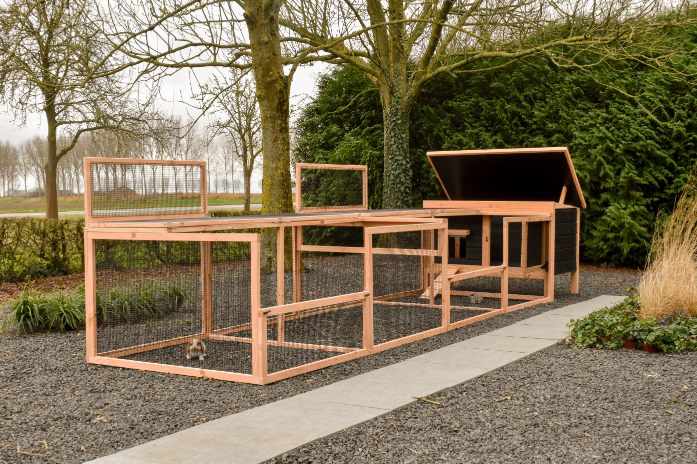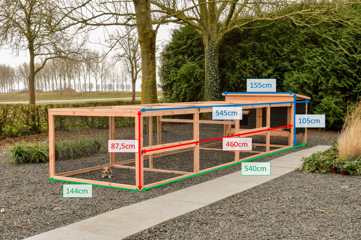 The Eggy rabbit hutch with a double run provides your rabbits with plenty of space and comfort. Thanks to the practical run, the hutch is easy to clean, ensuring maintenance is quick and effortless. Perfect for a healthy and safe environment for your rabbits.