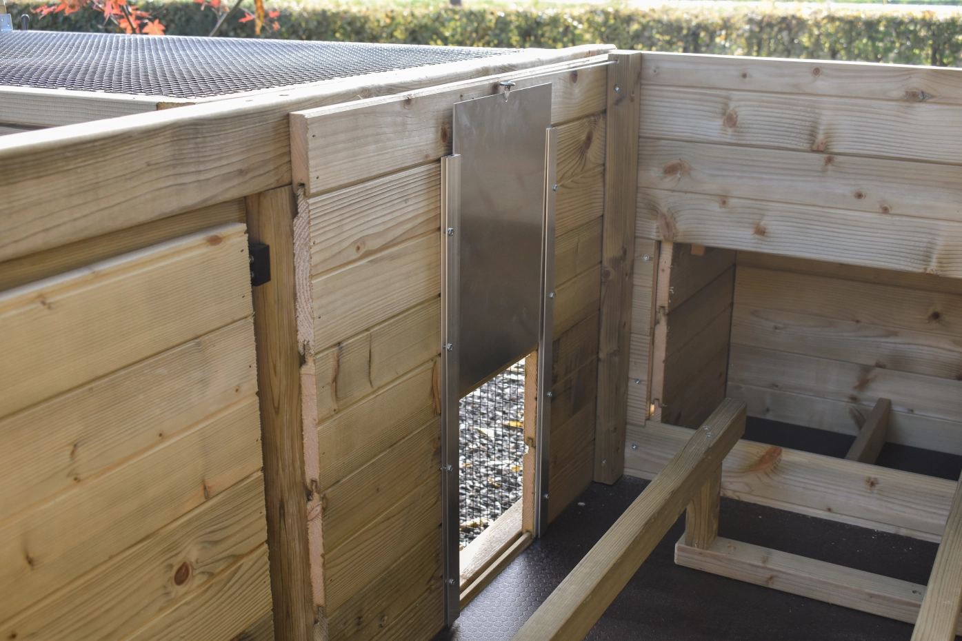 - Meshpannels with black plasticized mesh of 1,1 mm thickness. Mesh of 13x13 mm