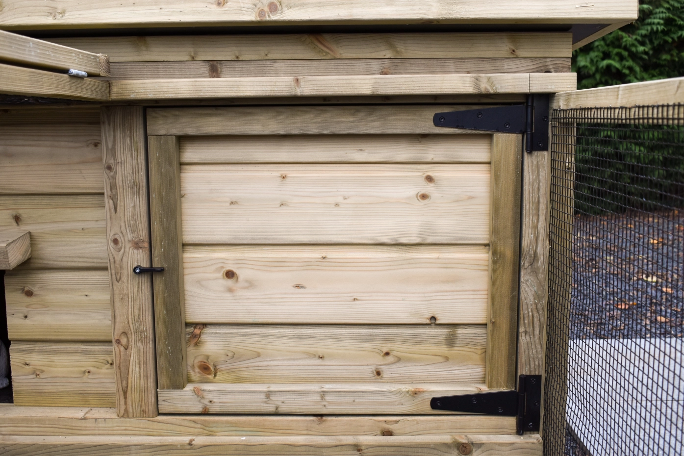 This low model, including a spacious run, offers your rabbits plenty of room to hop around and stay active. The hutch and run are easy to clean thanks to the hinged roof and the handy front door.