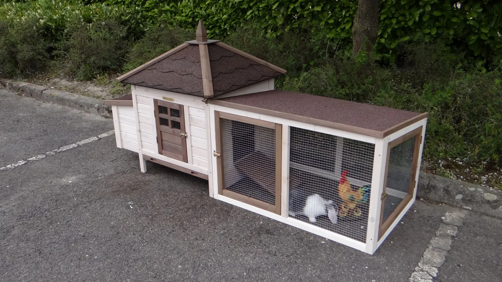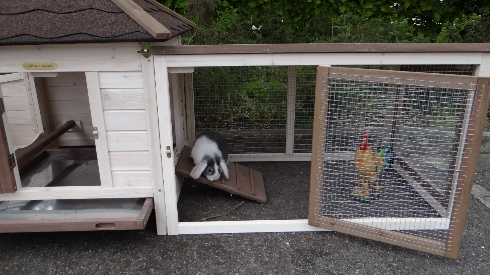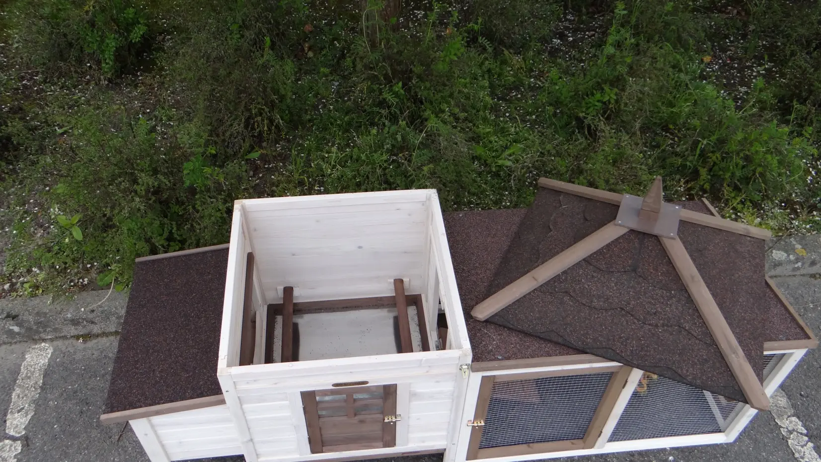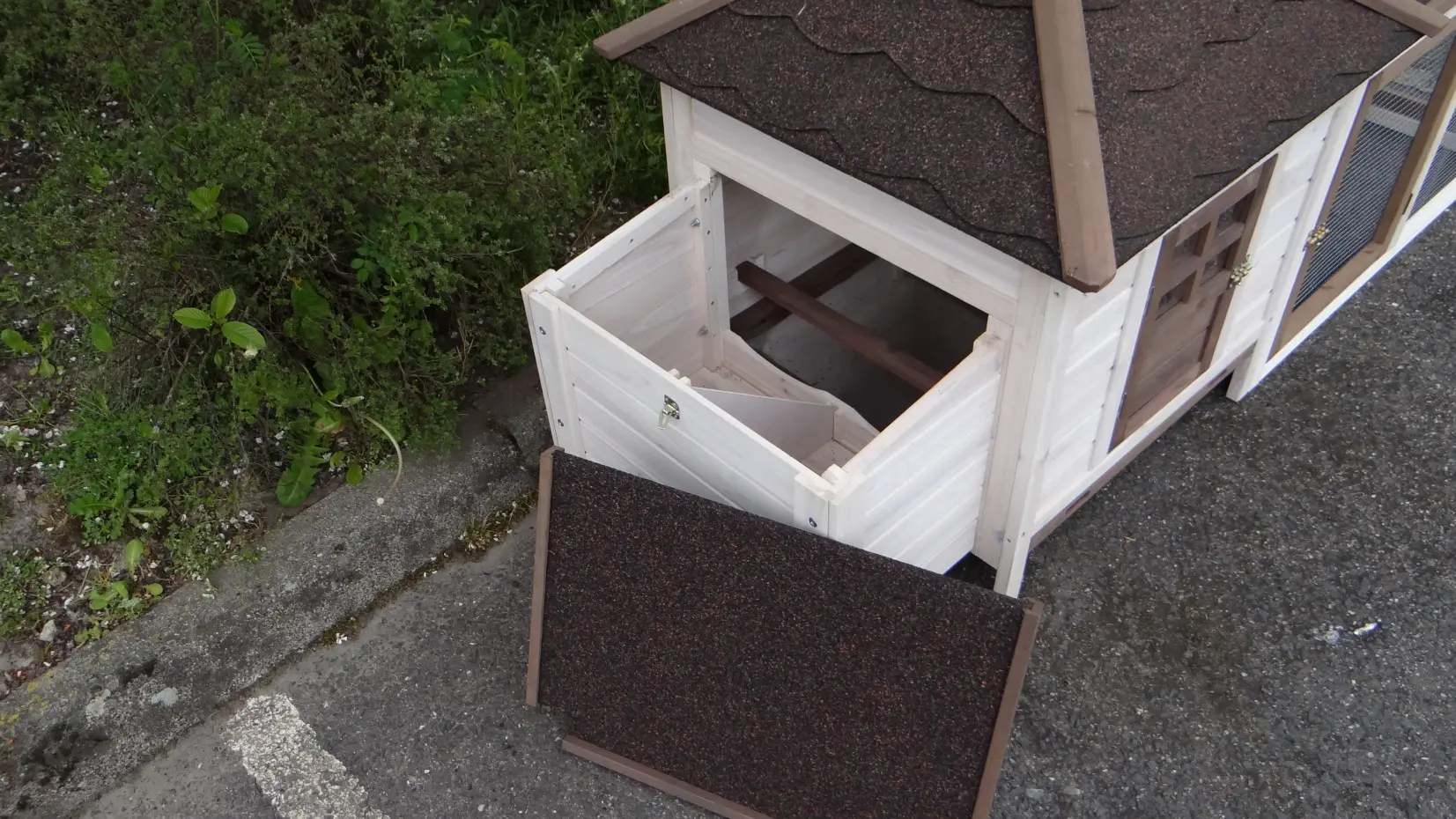- The roof of this rabbit hutch is equipped with roofing felt