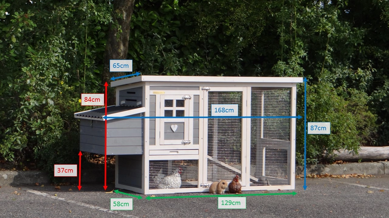 | Outer dimensions incl. roof and nest box (WxDxH) | 168x65x87cm |