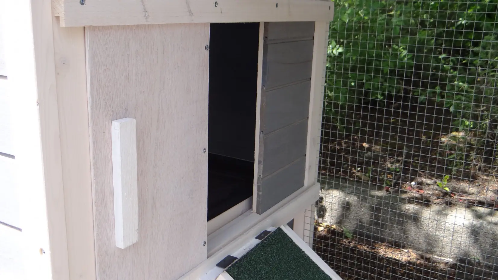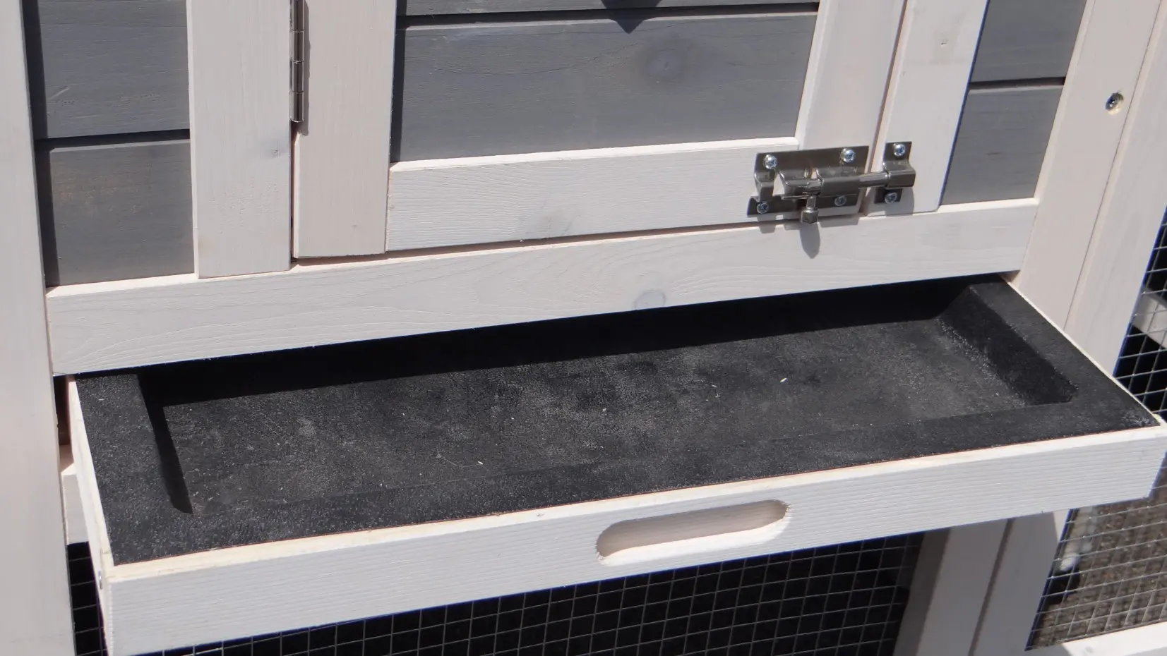 - The doors of this rabbit hutch are equiped with double locks