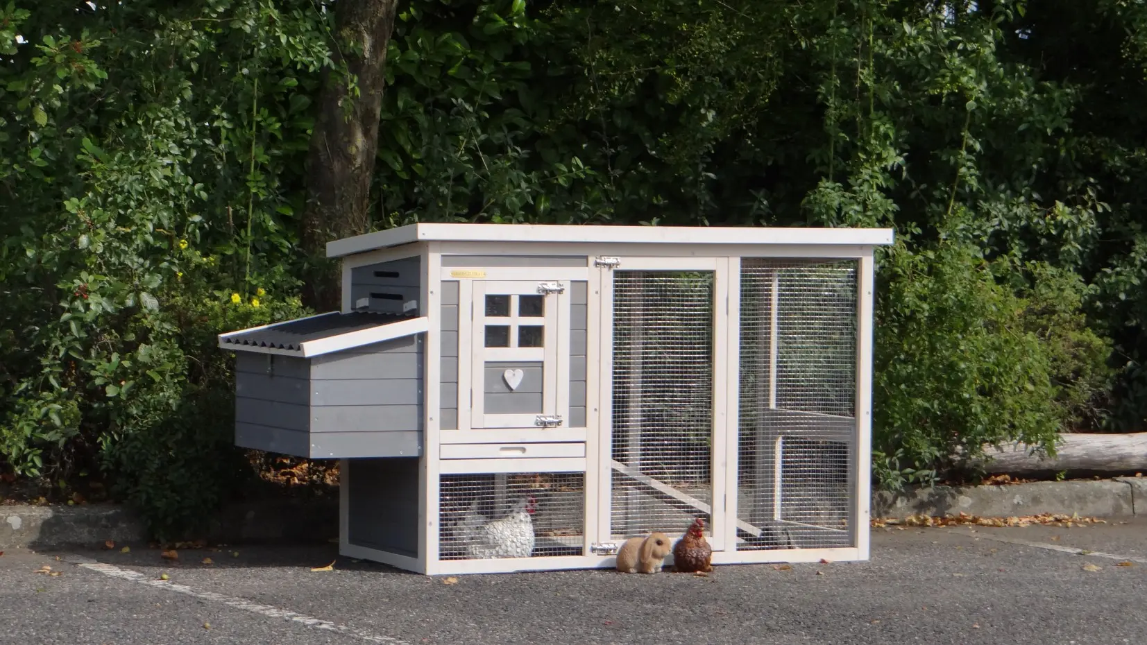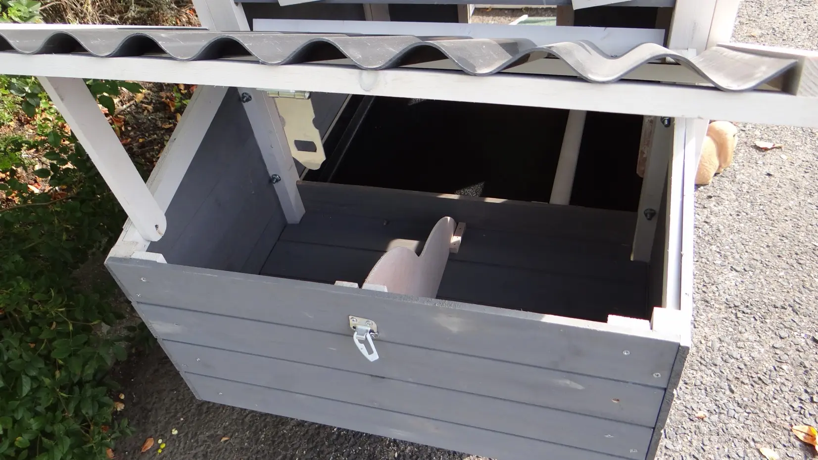 - The rabbit hutch has a plastic roof