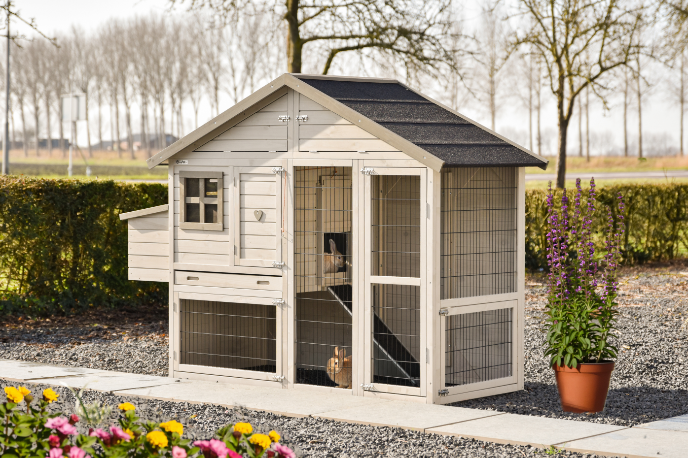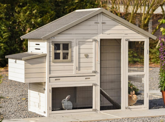 - This rabbit hutch is equipped with a nesting box