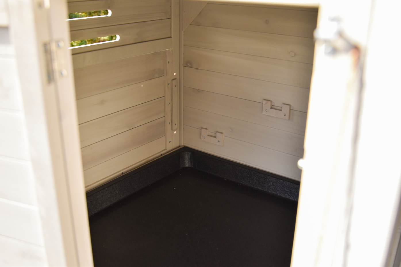 - The doors of this rabbit hutch are equiped with double locks