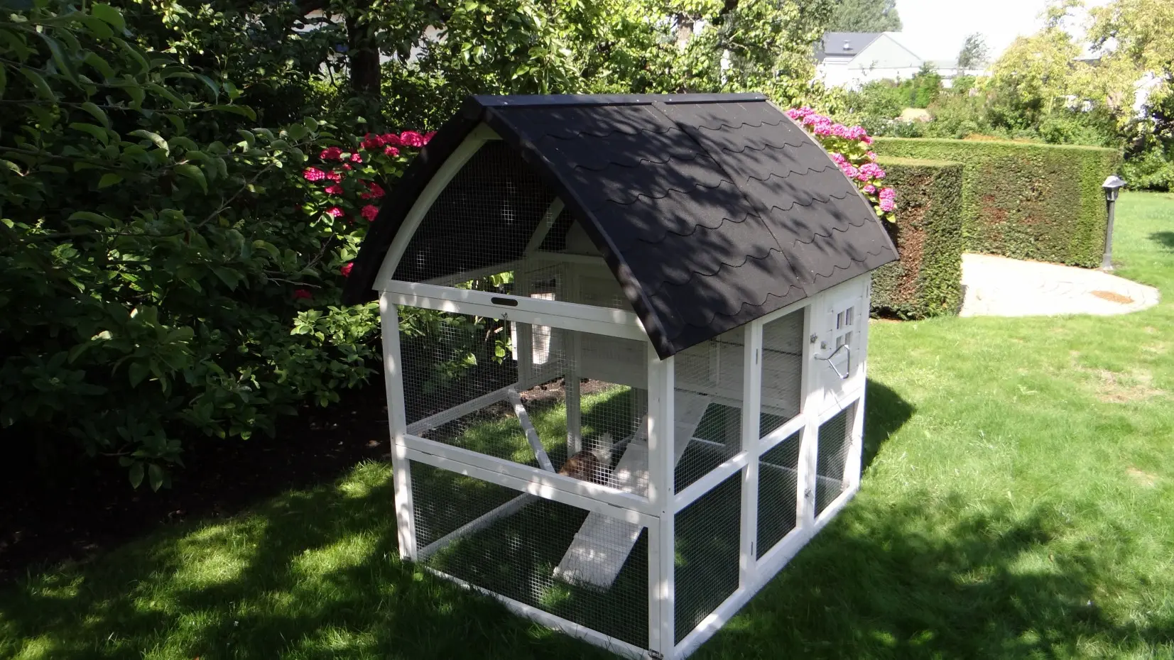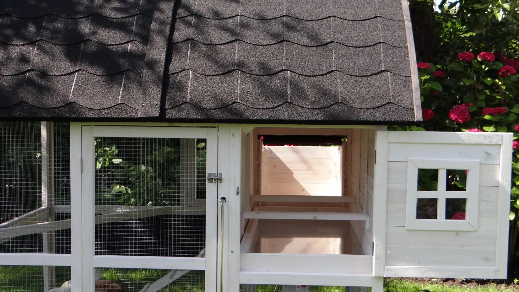 • The roof of this rabbit hutch is equipped with roofing felt