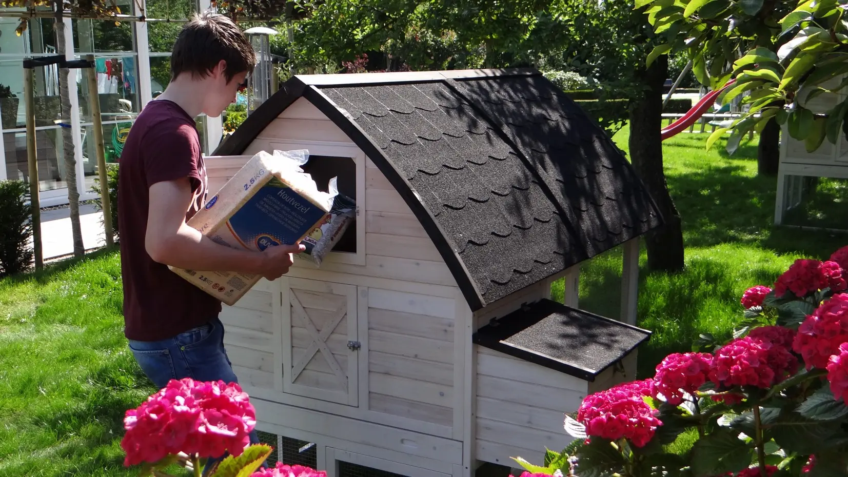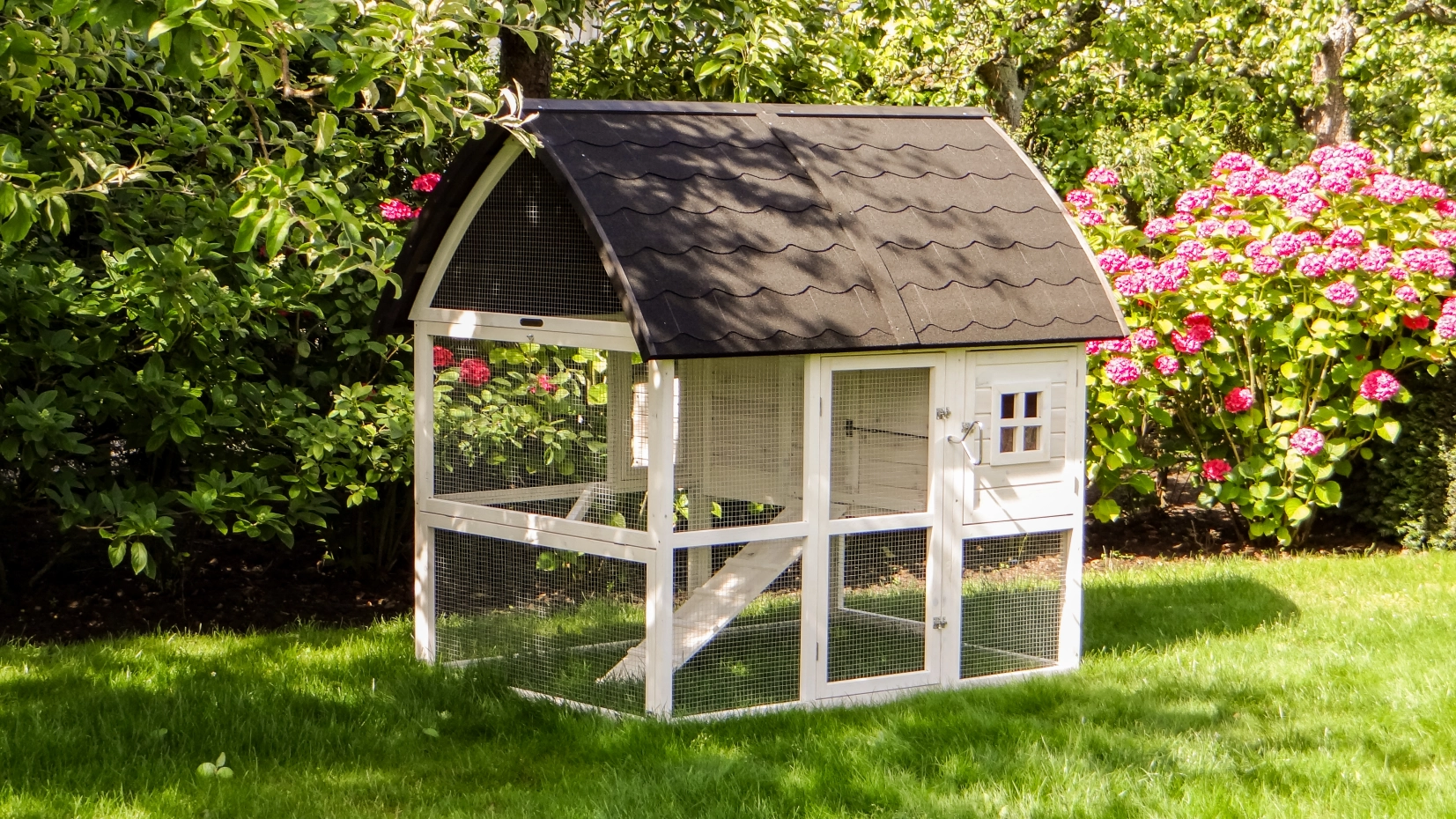 Outer dimensions incl. roof and nest box (WxDxH) 168x150x157cm