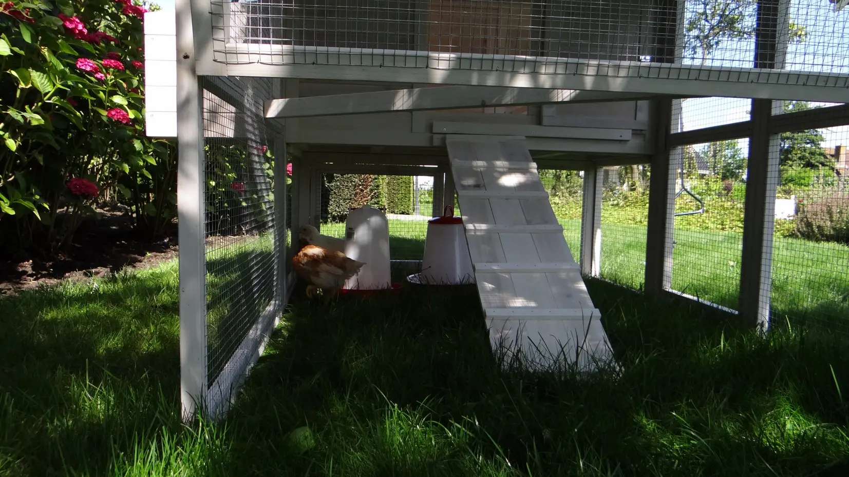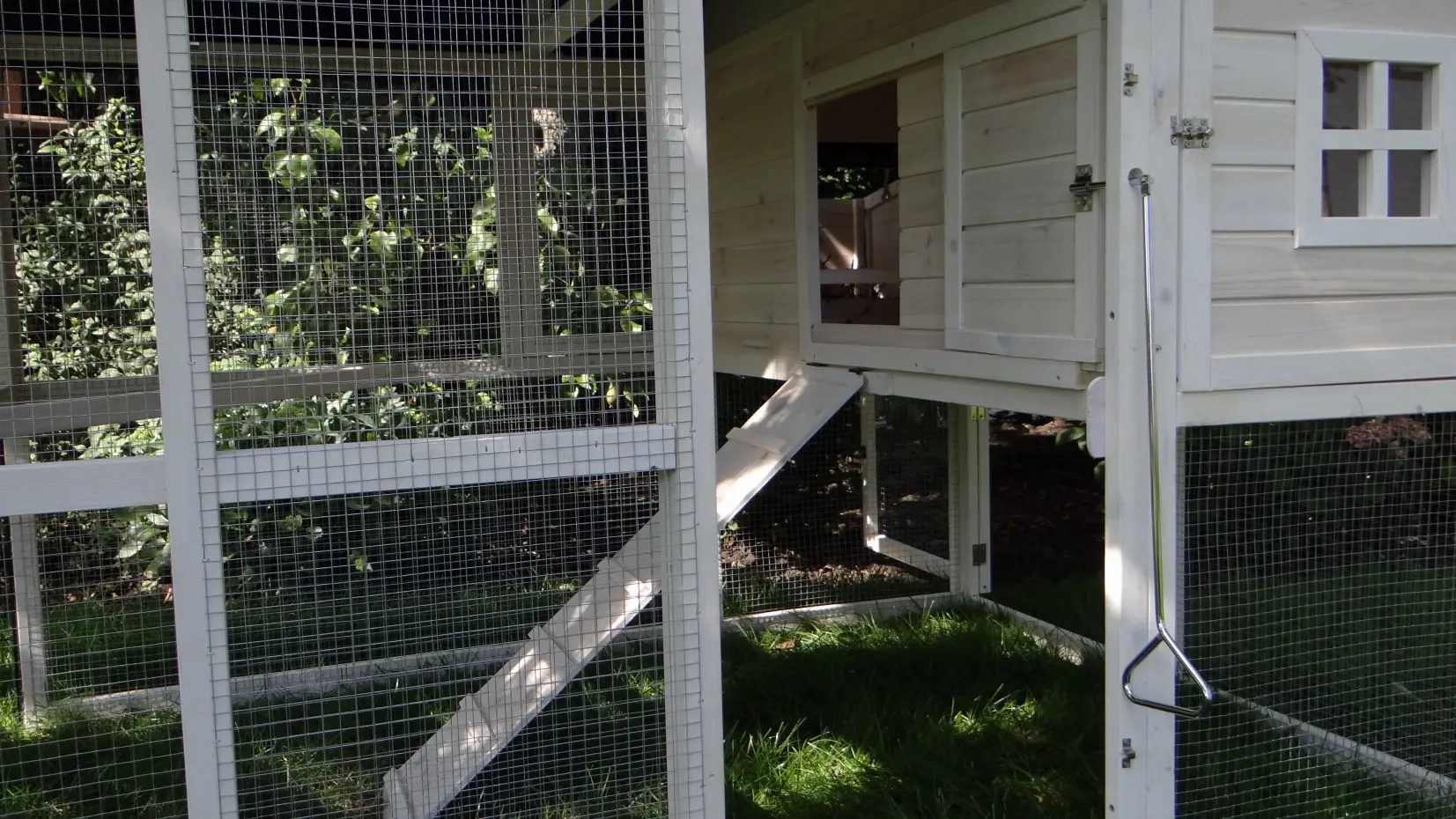 • The doors of this rabbit hutch are equiped with double locks
