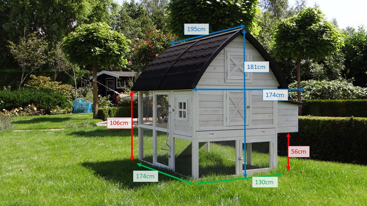 | Outer dimensions of the sleeping compartment with roof and nest box (WxDxH) | 564x250/174x181cm |