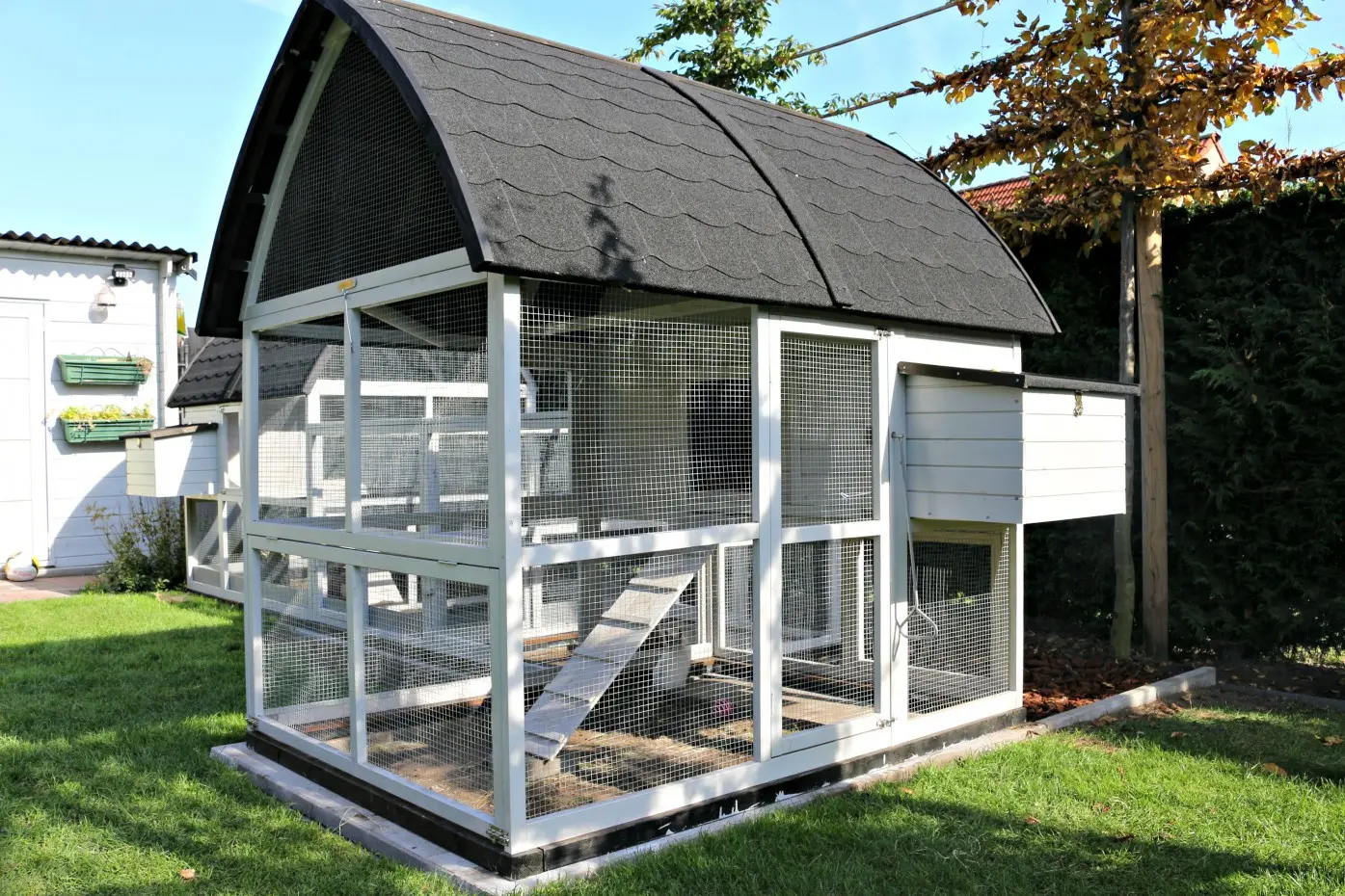 - The roof of this rabbit hutch is equipped with roofing felt