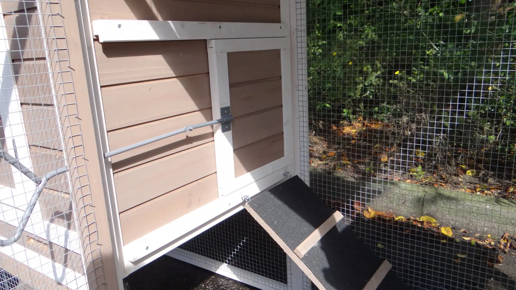 - The roof of this rabbit hutch is equipped with roofing felt