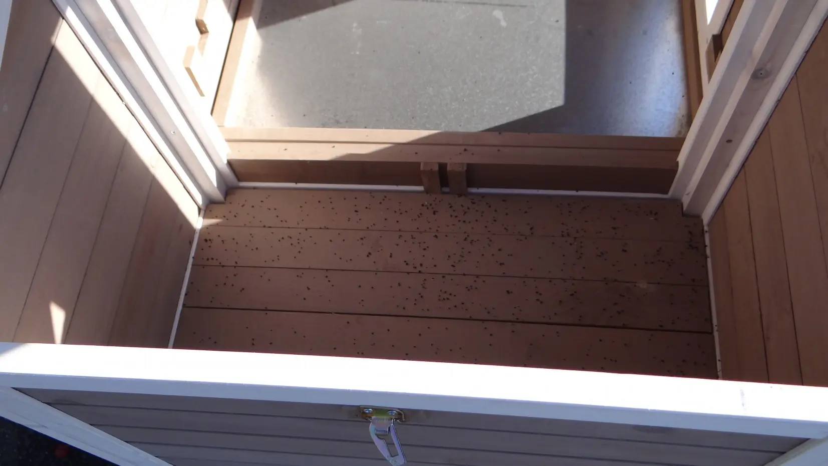 It is advisable to treat the hinges and locks periodically with silicone spray or lock spray to prevent rust and corrosion. If the pet house is not in a covered place, we advise you to anchor the house.