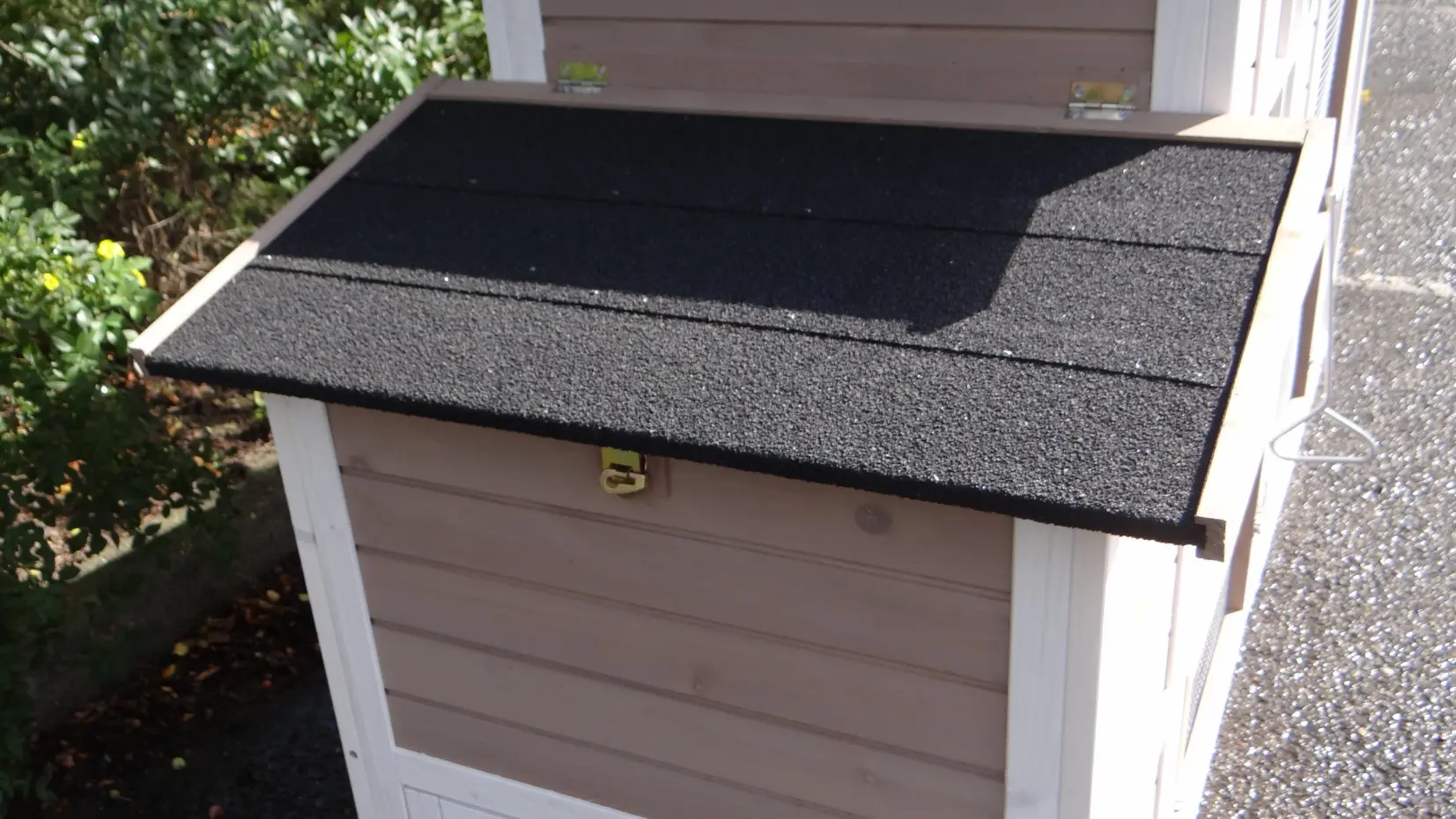 - The roof of this rabbit hutch is equipped with roofing felt