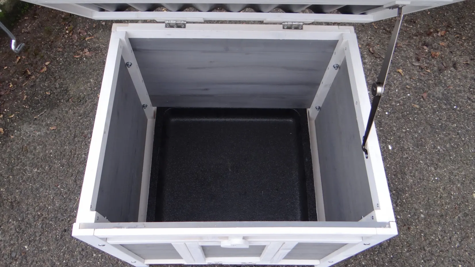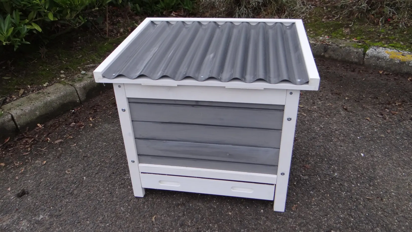 - This pet house has a handy hinged roof