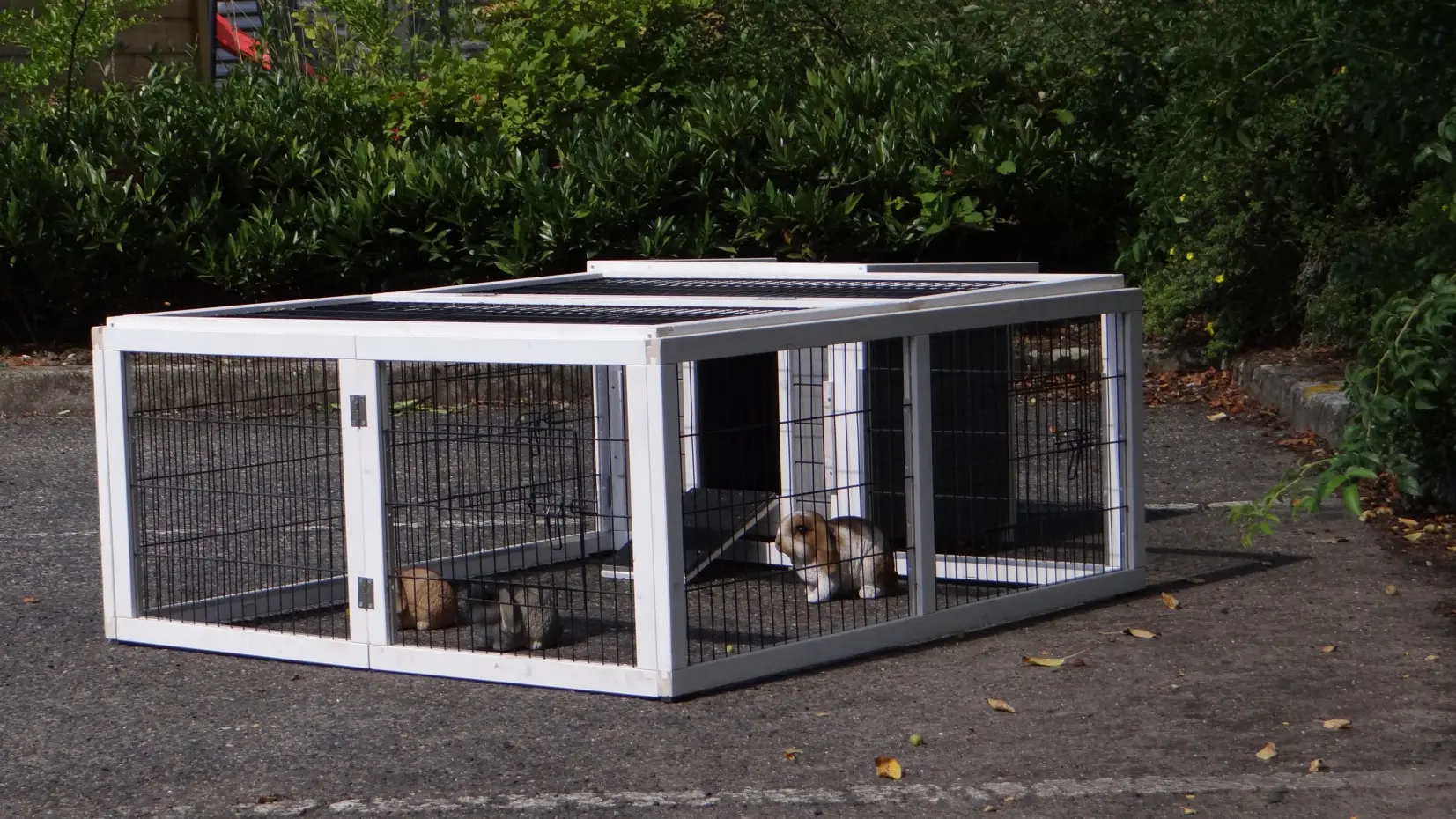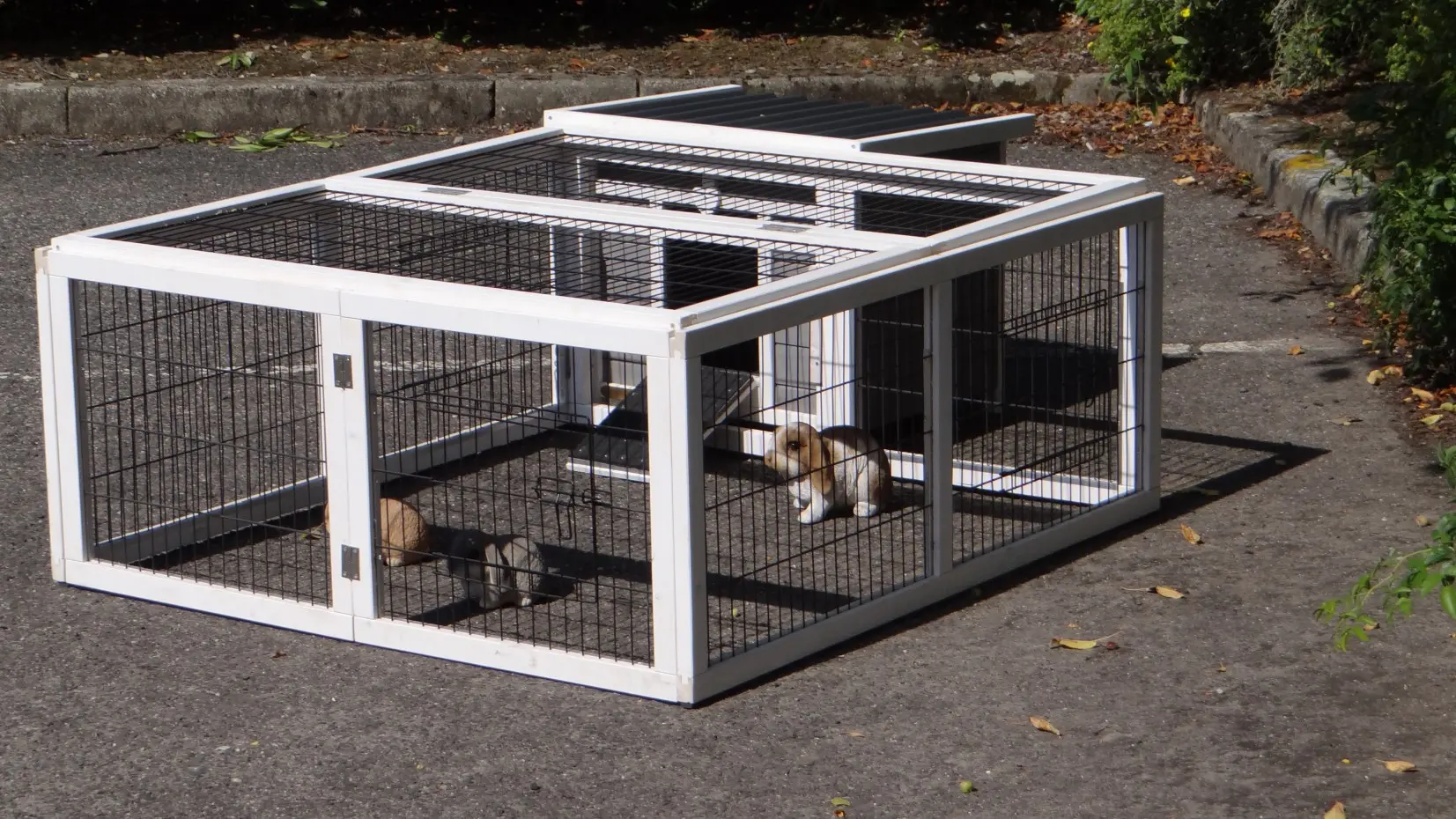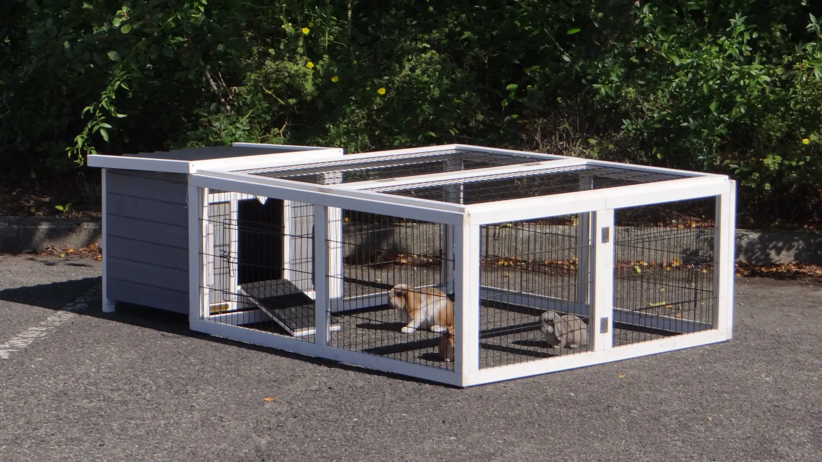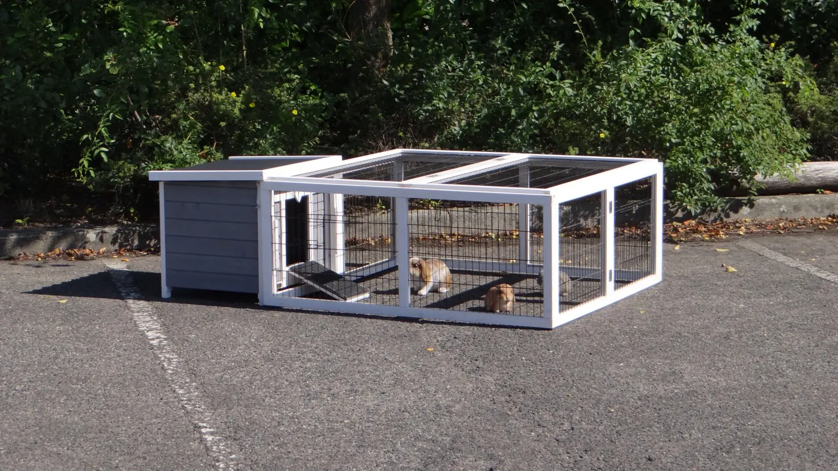 - The rabbit hutch has a plastic roof