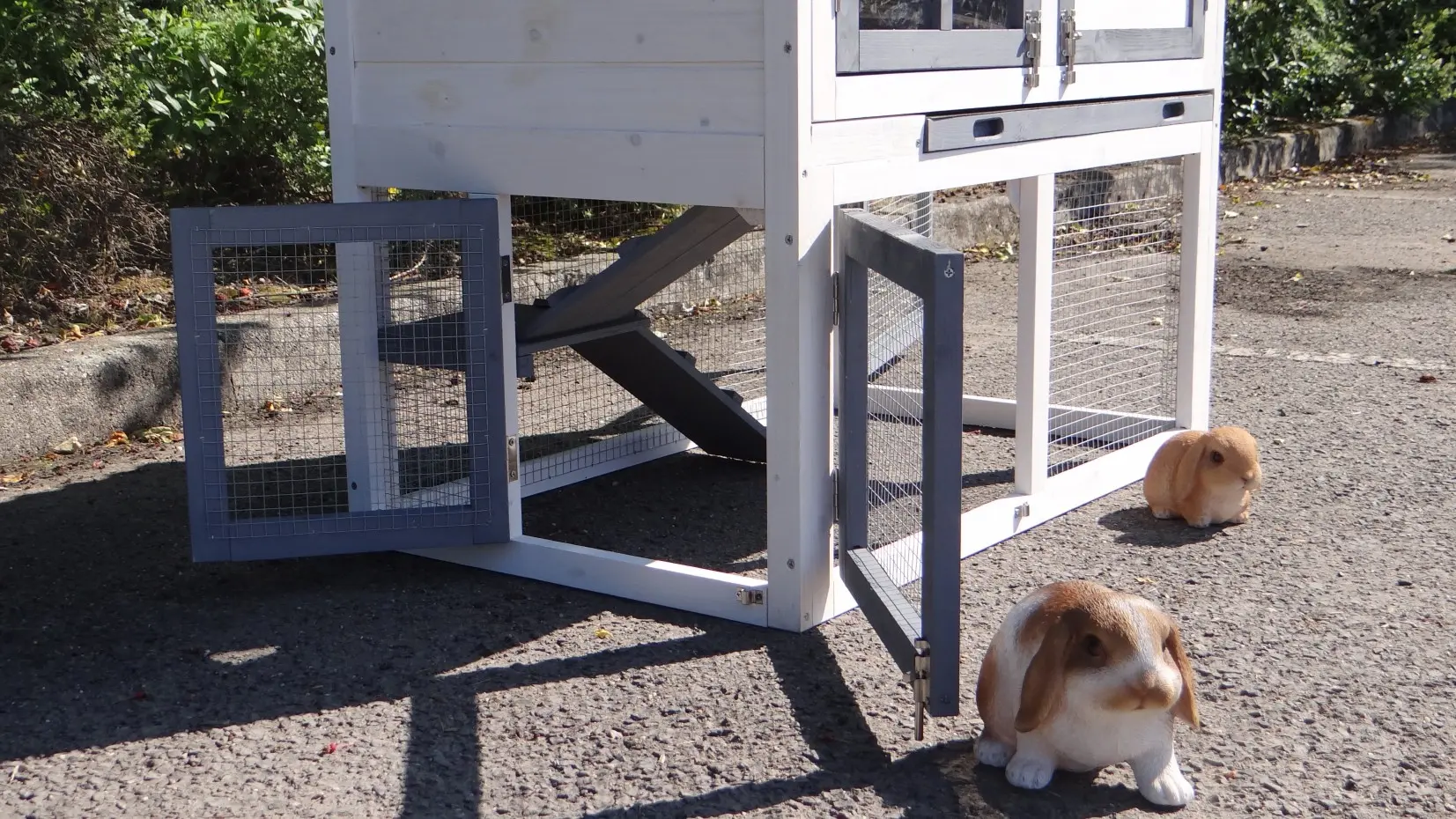 It is advisable to treat the hinges and locks periodically with silicone spray or lock spray to prevent rust and corrosion. If the pet house is not in a covered place, we advise you to anchor the house.
